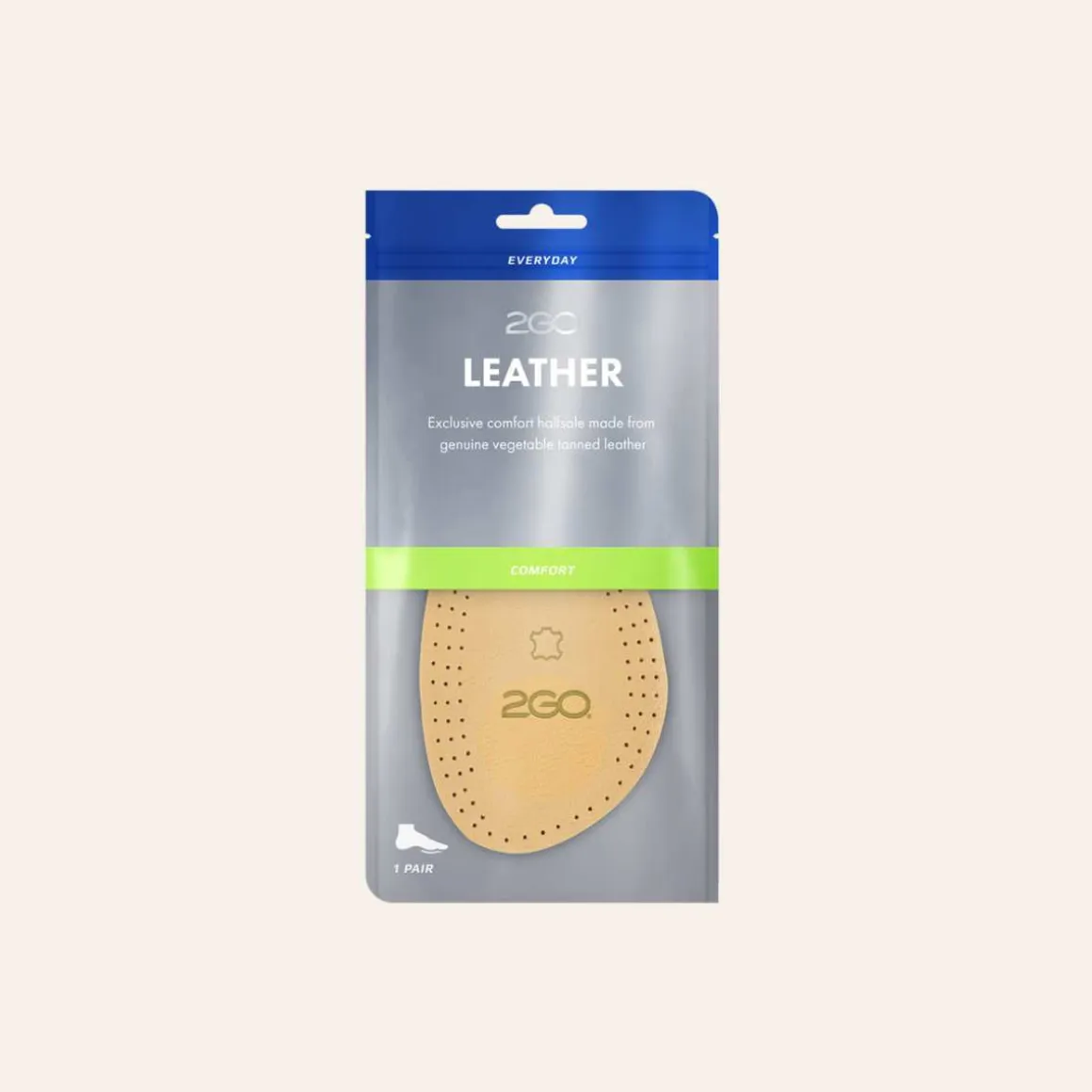 Halvsåle med myk overside av naturfarget lær. Underside av perforert skumlatex gir en støtdempende effekt. Aktivt kull minimerer vond lukt og har en fuktabsorberende effekt.
