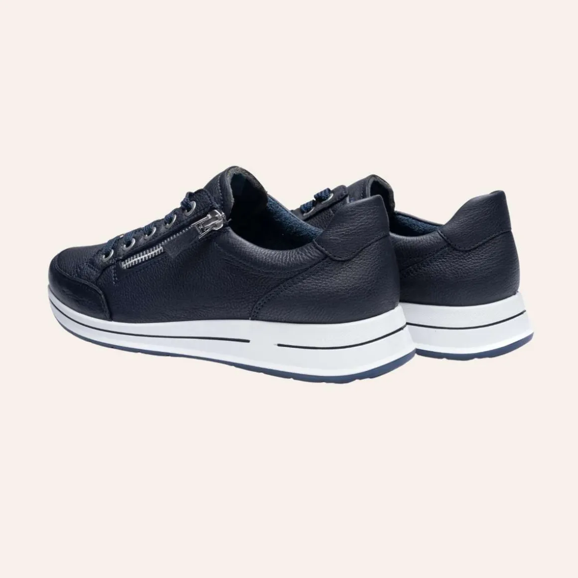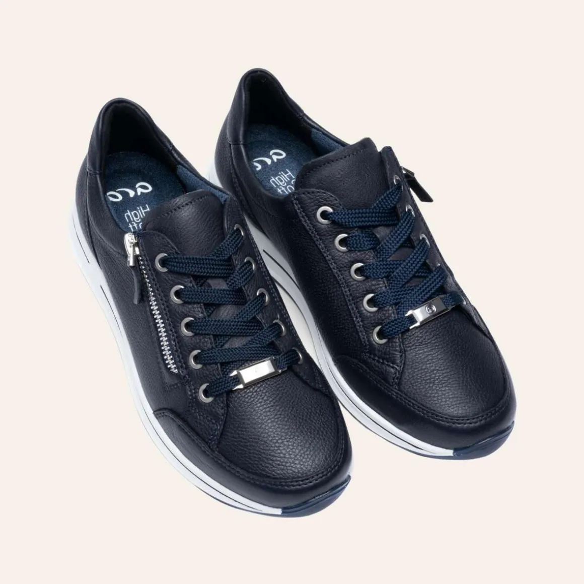 Osaka hverdagssko fra Ara. Mykt skinn til overmaterialet, men det bør også rettes spesiell oppmerksomhet mot interiøret: frotté basert på bambusfibre absorberer mye fuktighet, tørker raskt og er også så mykt at trykkpunkter forhindres. Takket være den komfortable Highsoft-funksjonen laget av mykt overmateriale og en såle med en spesiell skuminnsats i ballområdet, sikres en behagelig følelse av velvære ved hvert steg.