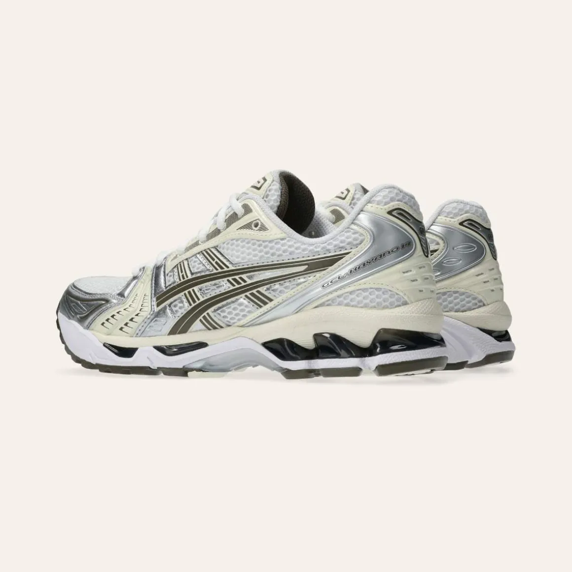 GEL-KAYANO 14 er en nytolkning av en retro løpesko med 2000-talls estetikk, inspirert av tidligere GEL-KAYANO-modeller fra Asics. Den oppdaterer ytelsen med nye materialer, samtidig som den beholder den originale mellomsålen med GEL-demping og forbedret passform. Overdelen har lagdelt skinn- og meshkonstruksjon fra 2008.