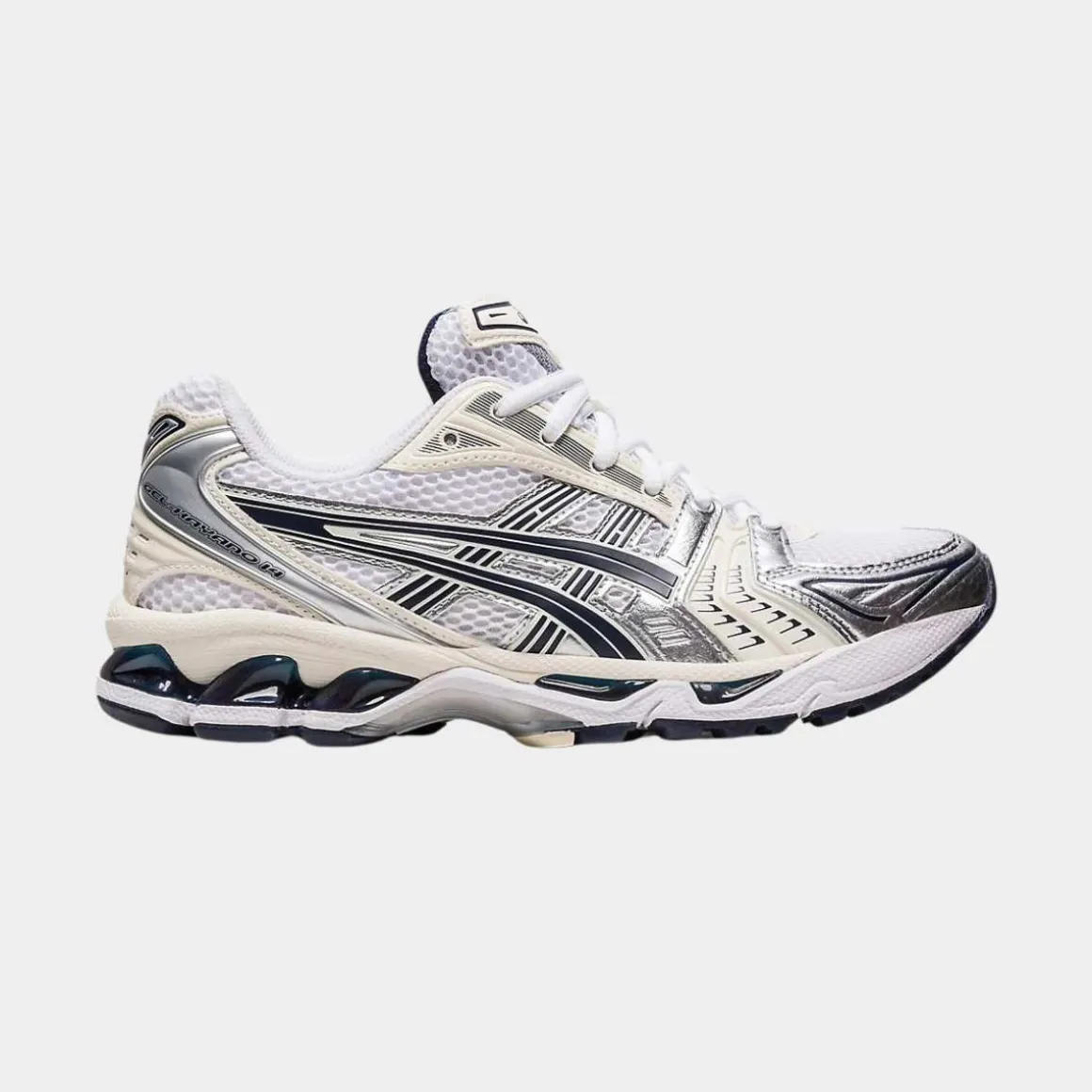 GEL-KAYANO 14 er en nytolkning av en retro løpesko med 2000-talls estetikk, inspirert av tidligere GEL-KAYANO-modeller fra Asics. Den oppdaterer ytelsen med nye materialer, samtidig som den beholder den originale mellomsålen med GEL-demping og forbedret passform. Overdelen har lagdelt skinn- og meshkonstruksjon fra 2008.