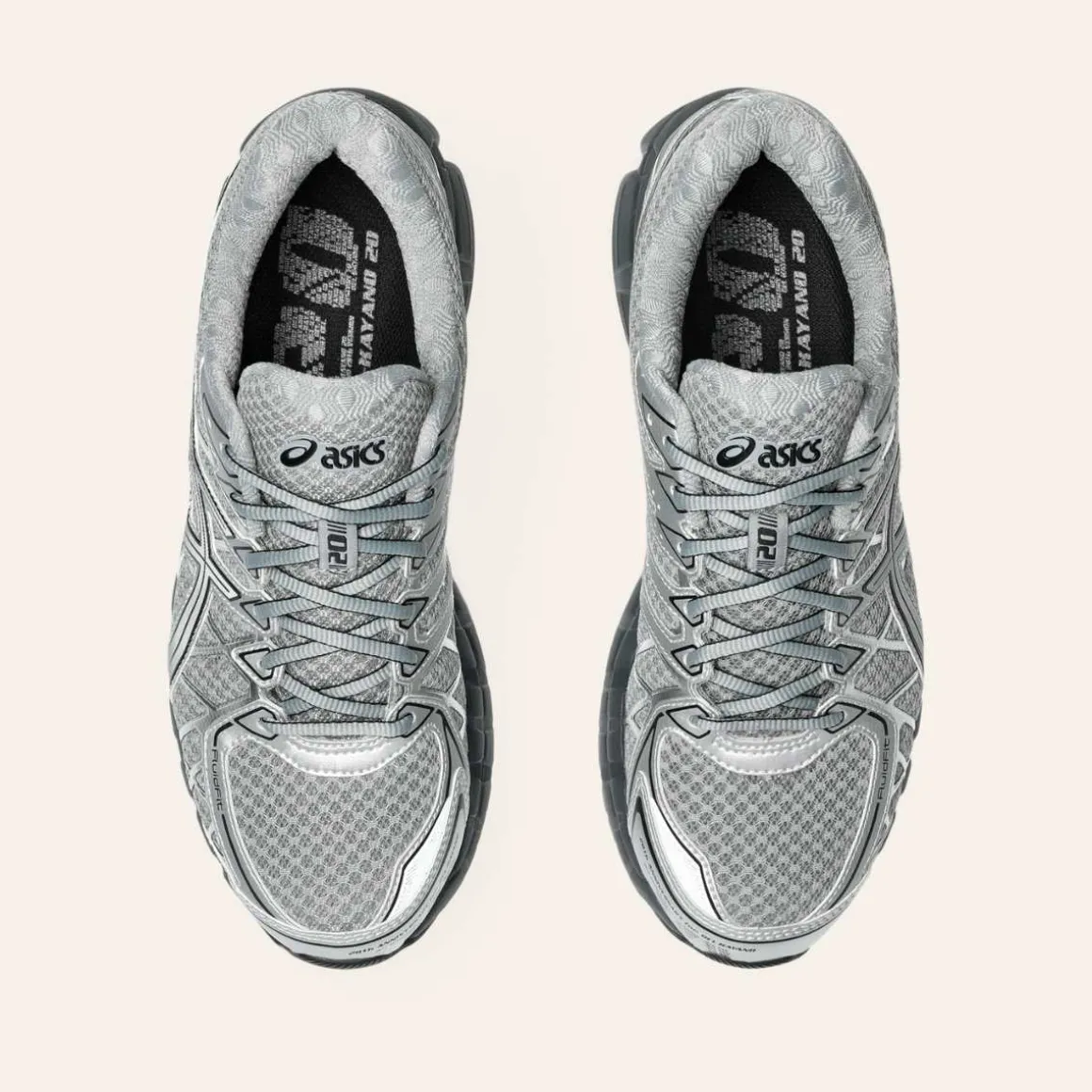 GEL-KAYANO 20 sneaker fra Asics ble opprinnelig lansert i 2013, og er tidligere anerkjent for sine strukturelle dempingsegenskaper ved langdistanseløping. Den arkitektoniske estetikken er inspirert av design av bygninger og biler, og skaper en teknisk form som gir et bredt spekter av funksjoner for hverdagslige opplevelser.