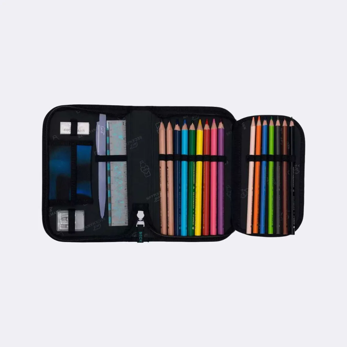 Pennalet er fullt av overraskelser, og inneholder selvfølgelig alt du trenger til skolen og leksene. Blyanter og fargestifter laget av FSC-sertifisert tre.