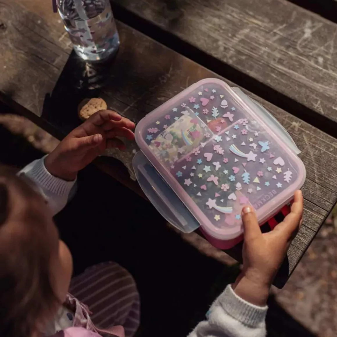 Matboksen fra Beckmann lukker helt tett og har en praktisk skillevegg som også kan tas ut om ønskelig. Den gode høyden gjør at det er plass til en liten yoghurt.