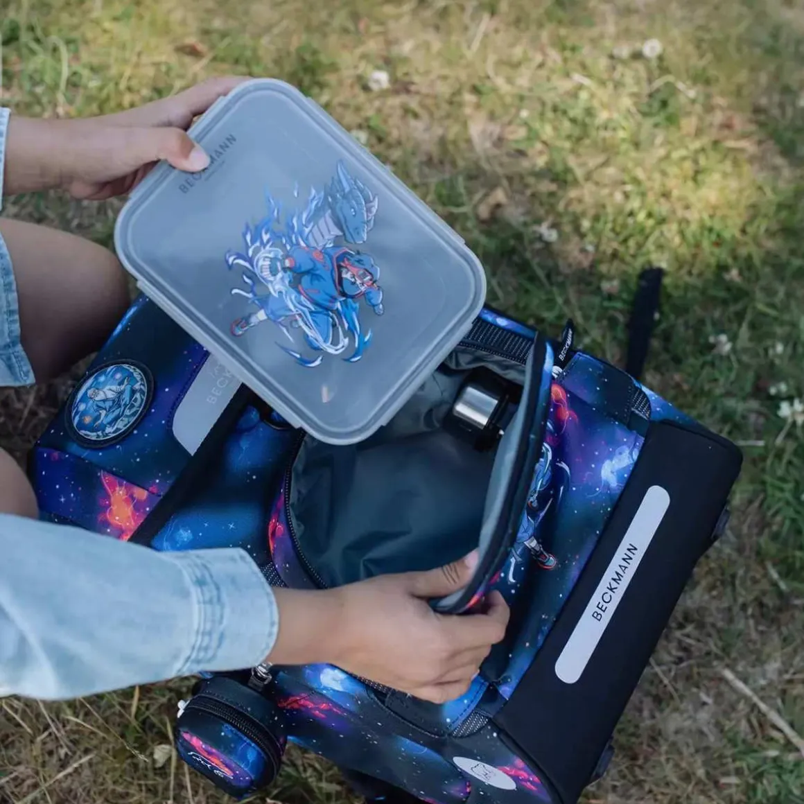 Matboksen fra Beckmann lukker helt tett og har en praktisk skillevegg som også kan tas ut om ønskelig. Den gode høyden gjør at det er plass til en liten yoghurt.