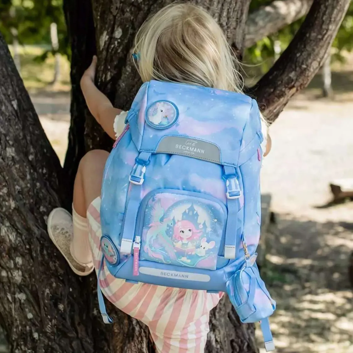 Beckmann ryggsekk til barn. I tillegg til figurer, mønstre og farger har ryggsekkene førsteklasses bærekomfort med polstring, stropper og vektfordeling. Classic har plass til alt du trenger i en skolehverdag og er designet for å holde vekten tett inntil ryggen.