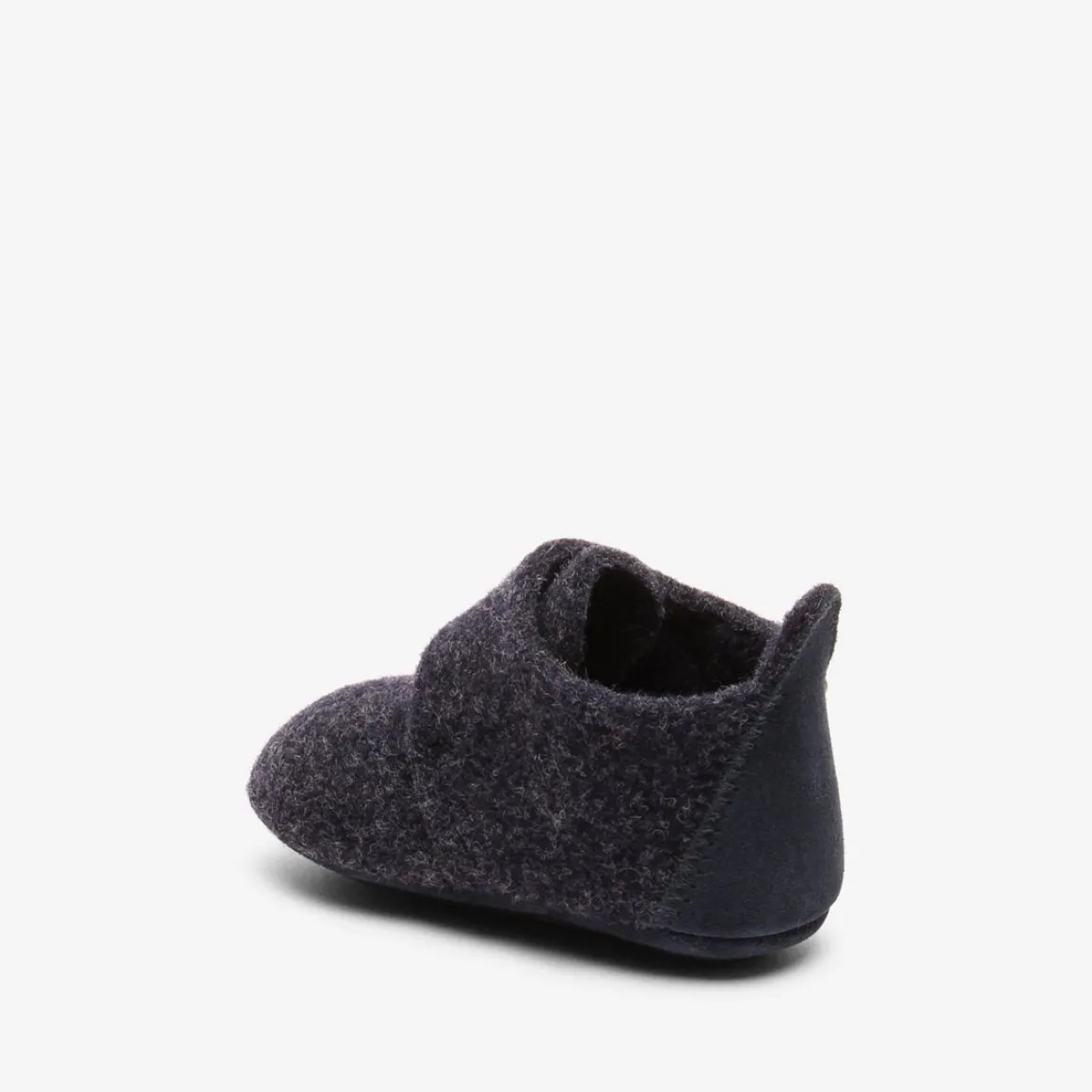 Ulltøfler med borrelås fra Bisgaard og en myk, naturlig og glidefri yttersåle av gummi som gir optimal støtte. Tøflene er produsert i ull og lukket rundt føttene, noe som gir små føtter perfekt støtte. Borrelåssystemet sørger for på tøflene er lette å ta av og på av barn i alle aldre.