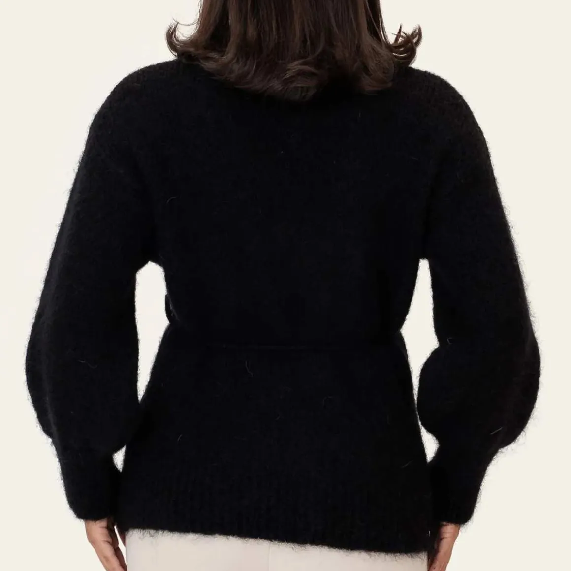 En myk cardigan laget av en luftig ullblanding. Denne stilen er inspirert av BYIC sin populære IdaIC Cardigan, gjenskapt i et elegant omslagsdesign. Den knytes i midjen med et matchende belte, som fremhever figuren og skaper en feminin silhuett. De lange, lett ballongformede ermene og den dype V-halsen gir den et avslappet, men likevel raffinert utseende.