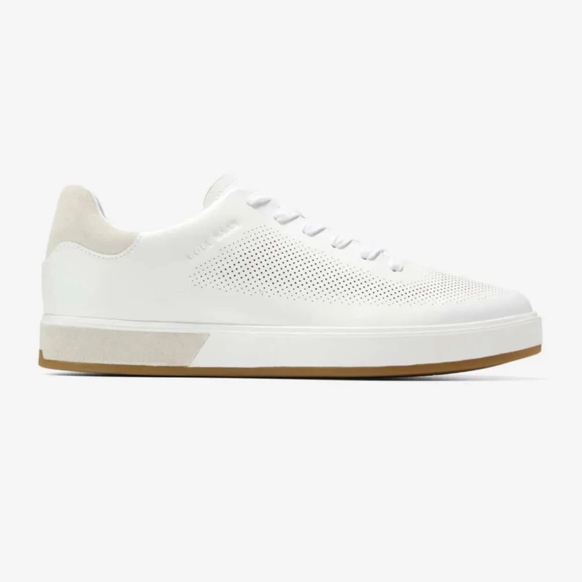GrandPrø Angleace Sneaker fra Cole Haan kombinerer et minimalistisk design med moderne komfortteknologi. Overdelen i skinn i hvit og Silver Birch er kombinert med ultrafine laserperforeringer, som gir et stilrent uttrykk og økt pusteevne.
