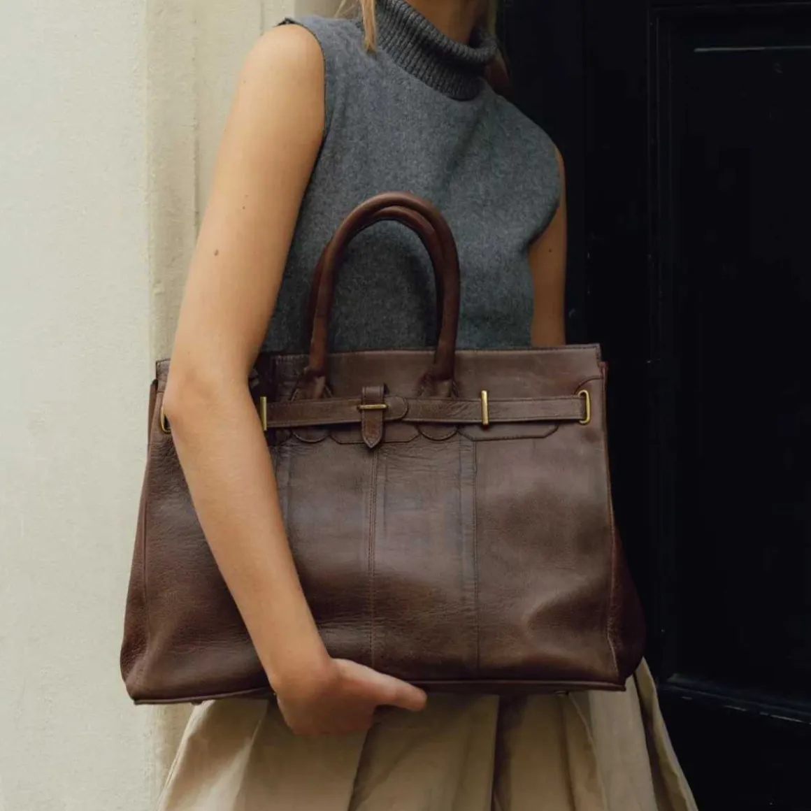 Laget i Dixie sin Urban-skinnkvalitet – et naturlig, frest kuskinn, hvor hver veske er behandlet og farget før overflaten er ferdigbehandlet, noe som bevarer det originale naringsmønsteret til det rå læret. Etter at veskene er farget, påføres lett voks for hånd, noe som gir en glatt og myk finish med unike egenskaper.