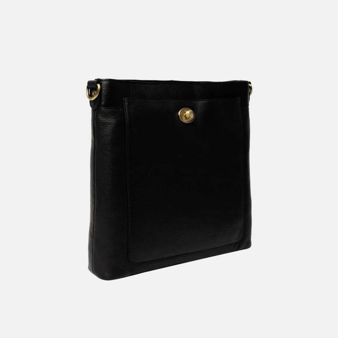 Moa Big er en elegant crossover-veske med et moderne og strømlinjeformet design. Den har en dekorativ detalj på forsiden med et gullfarget spenne som gir vesken et sofistikert preg. Det romslige hovedrommet har god plass til alt du trenger i hverdagen, noe som gjør den til den perfekte følgesvennen når du er på farten.