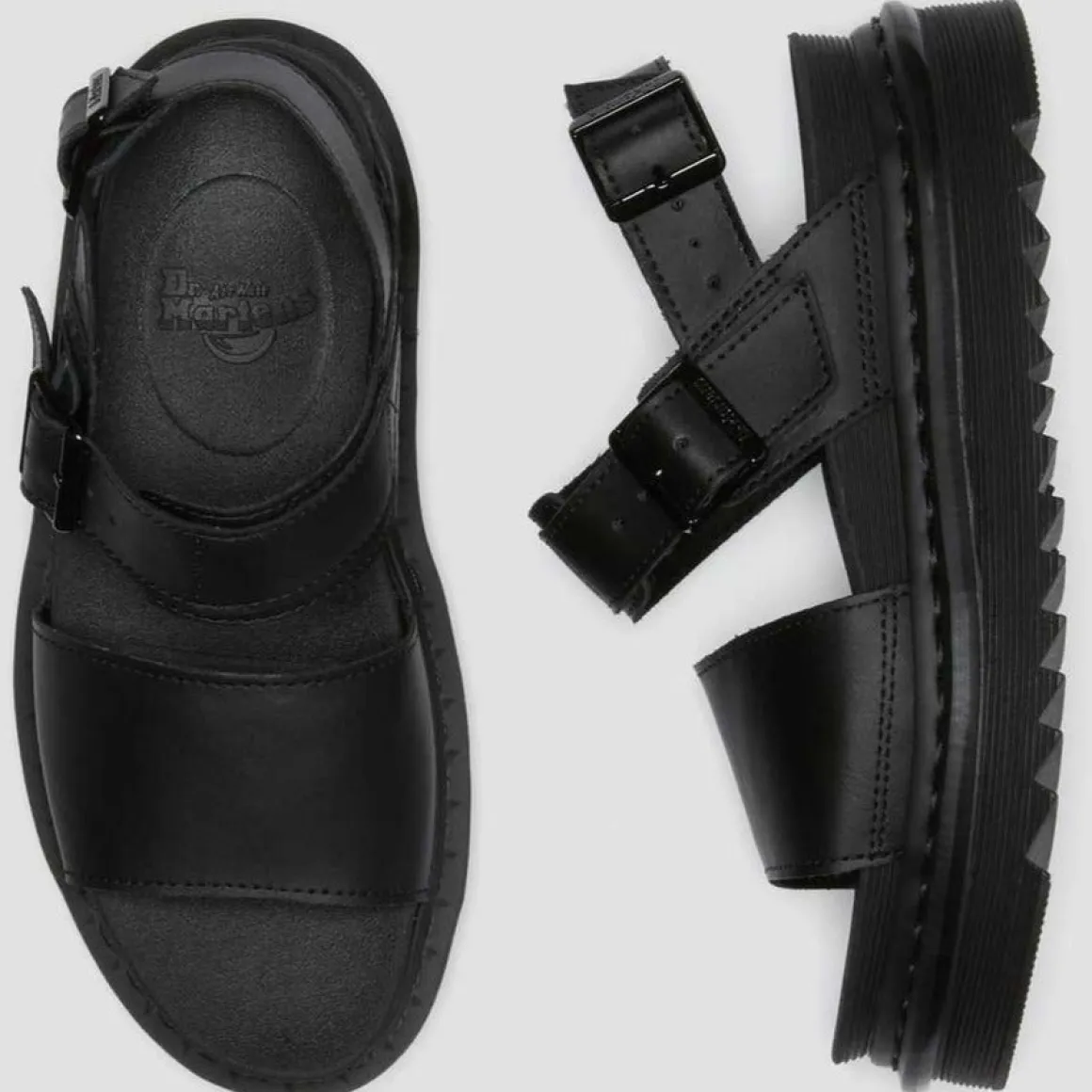 Dr. Martens Voss er endelig tilbake. En dristig og kul sandal som har de velkjente detaljene fra Dr. Martens. Sandalene er laget av Hydro-skinn med to justerbare stropper. De sitter på en superlett, enestående såle.