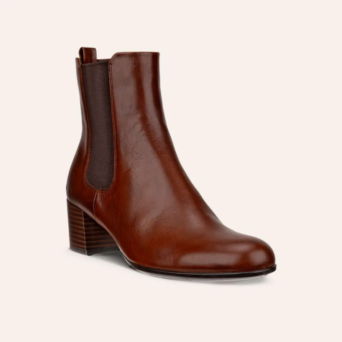 Gjør deg klar til å erobre dagen i de elegante Chelsea-bootsene ECCO DRESS CLASSIC 35. Disse Chelsea-bootsene fungerer som et stilsikkert fundament til ethvert antrekk og utstråler eleganse uten kompromiss med den karakteristiske komforten. Takket være hælen på 35 mm og den elastiske lukkingen får du optimal balanse mellom eleganse og funksjon.