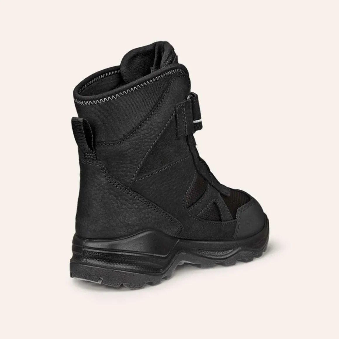 SNOW MOUNTAIN-støvlene fra ECCO til barn er en perfekt følgesvenn på vinterstid. Støvelen gir full støtte under lek og moro i snøen, og er laget med et mykt tekstilfôr for ekstra varme. FLUIDFORM™-teknologien sikrer utmerket komfort og passform. Med sålen i PU/gummi er den rustet for intens lek og aktivitet, mens den vanntette membranen uten PFAS holder de små tærne tørre.