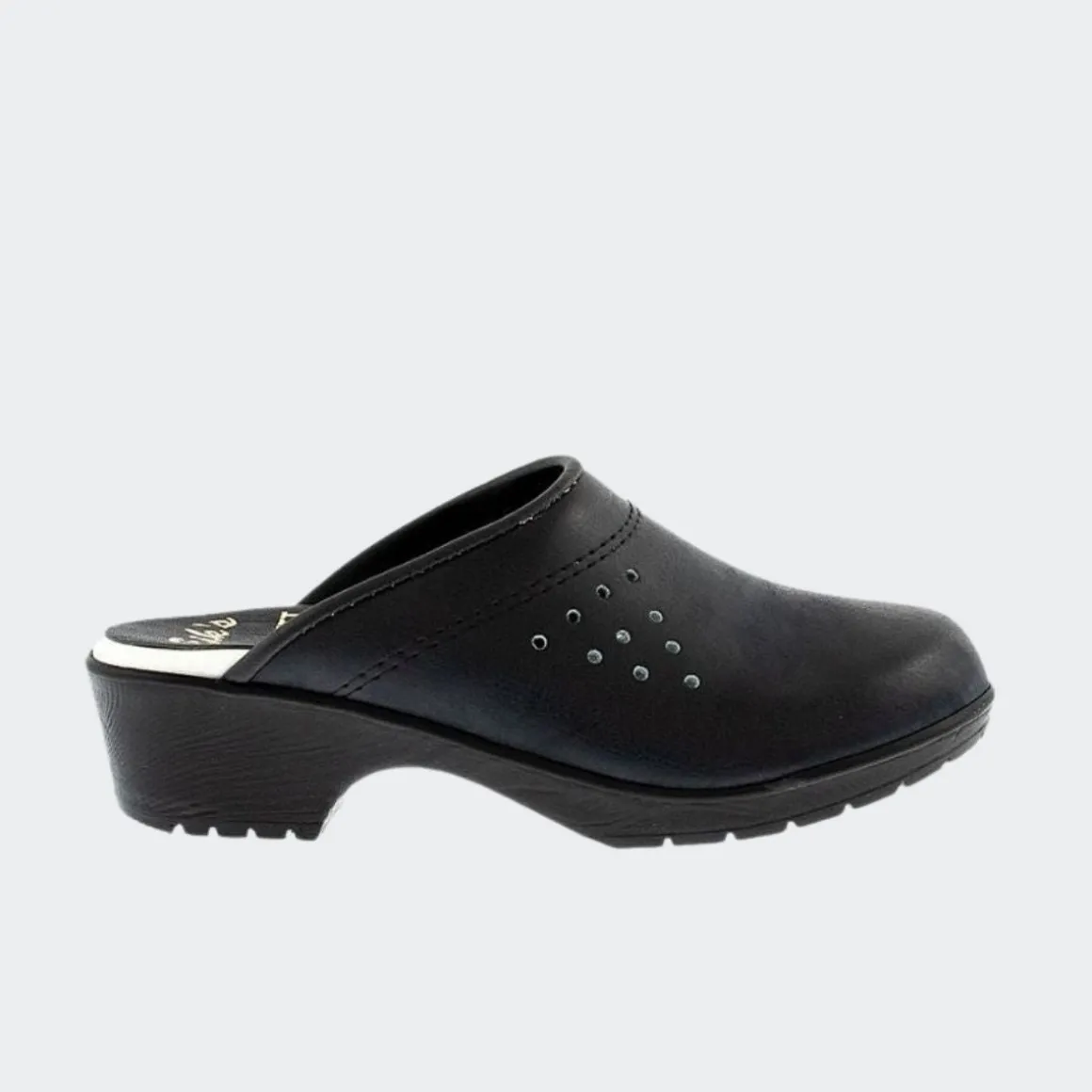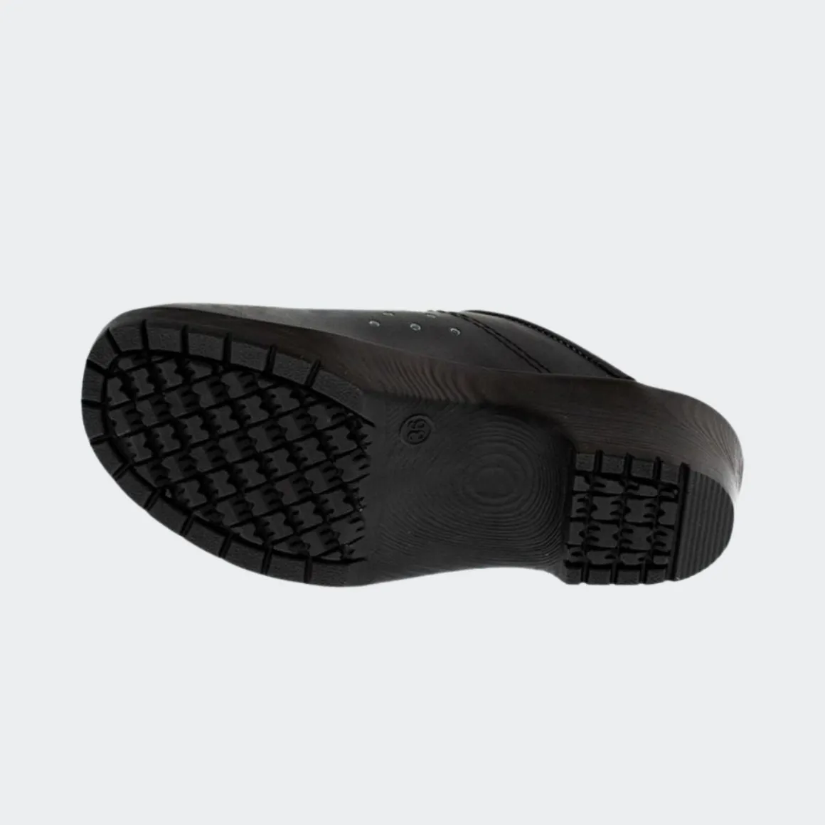 Klassisk Eik´s klogg i svart skinn. Eik Treskofabrikk er en liten familiebedrift som har produsert tresko for det kommersielle markedet siden 1989. Eik´s er en tradisjonsrik norsk skofabrikk som leverer god kvalitet til en god pris. Det er ikke mange norske skofabrikker igjen så ved å kjøpe Eik`s klogger støtter du en norsk familiebedrift.
