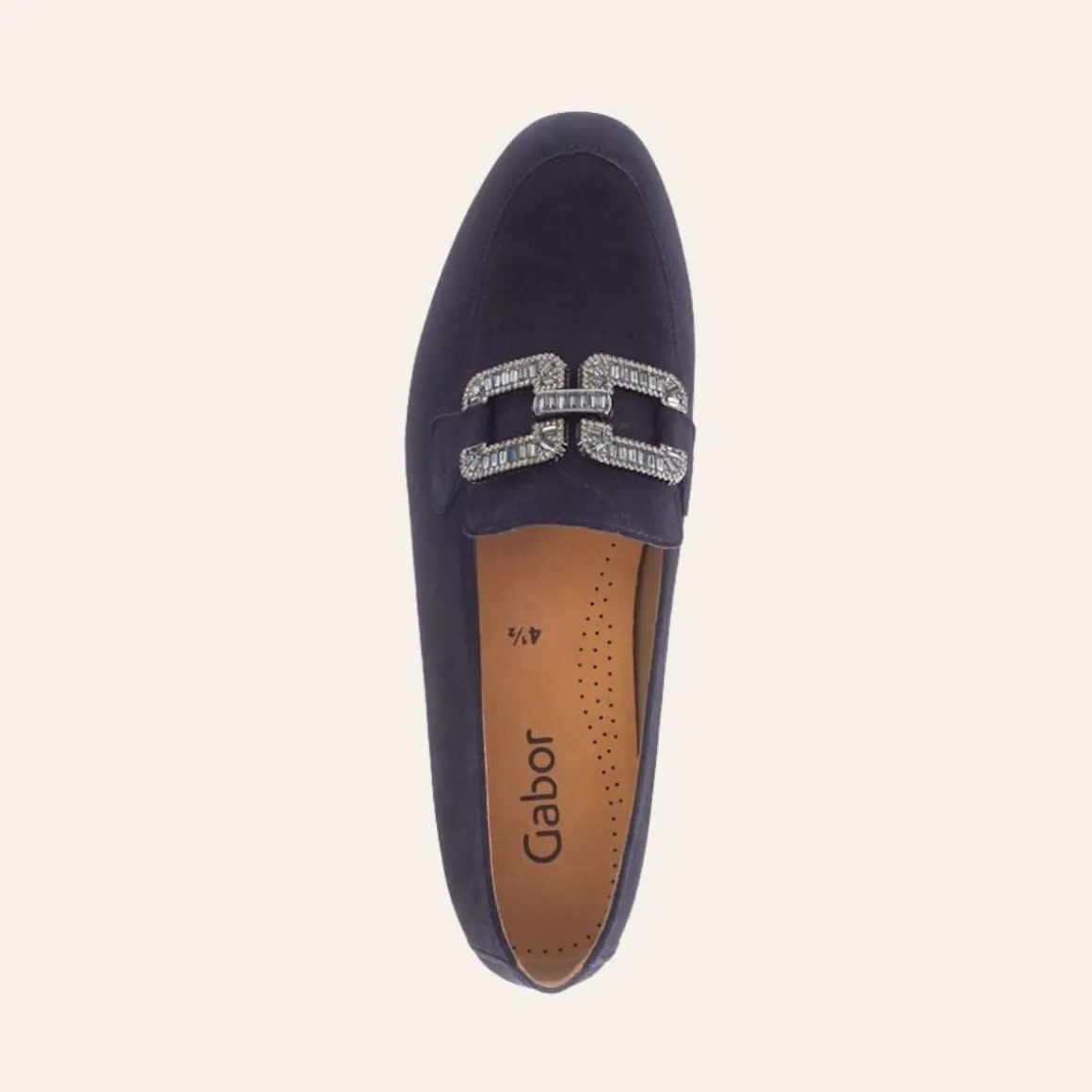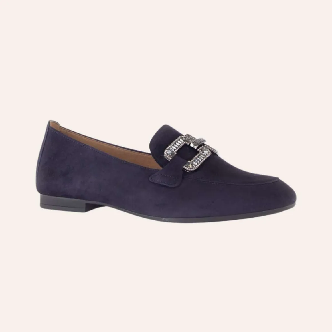 Gabor loafers i fargen navy er en stilfull og komfortabel sko som passer perfekt til både hverdag og fest. Laget i Samtchevreau-materiale som er veldig mykt og fint, gir disse loafersene en luksuriøs følelse, mens den elegante gullfargen tilfører et sofistikert preg. Med en lav hæl på 15 mm og en F-bredde, tilbyr de god komfort gjennom hele dagen. Skoene har et lekkert lærfôr og en slitesterk TPU-såle, som gir både støtte og holdbarhet.