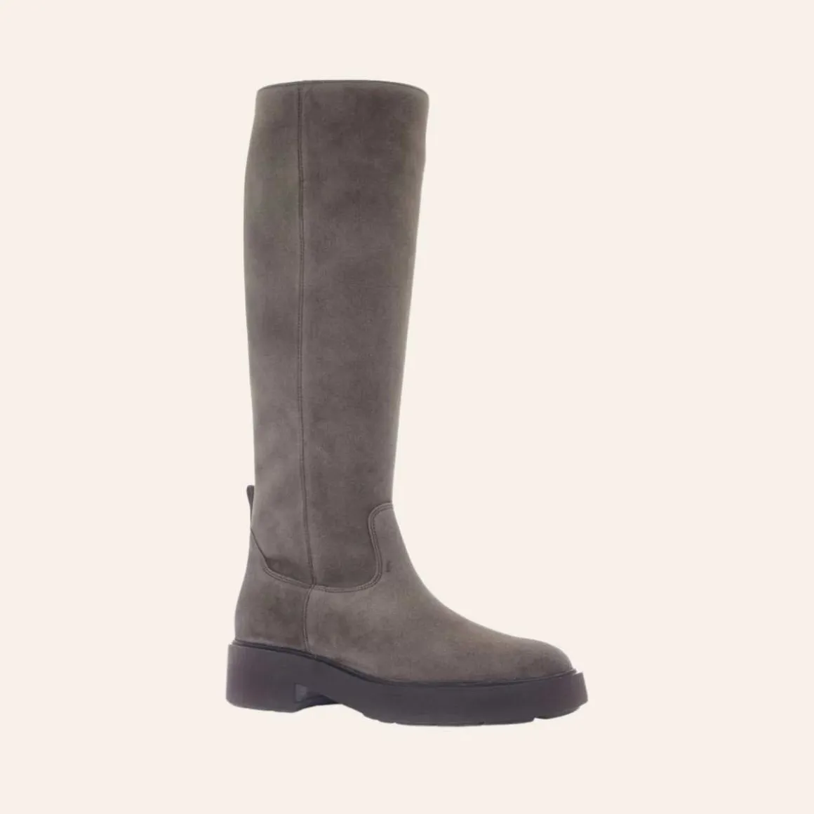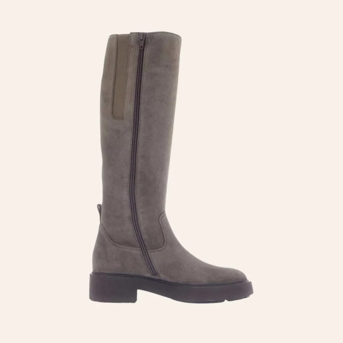 Denne stilrene støvletten fra Gabor kombinerer eleganse og komfort. Laget i mykt, bærekraftig semsket skinn med microfôr på innsiden for behagelig passform. Den stabile blokkhælen på 5 cm gir god støtte og en feminin silhuett. Skaftet er 42 cm høyt og gir et klassisk uttrykk – perfekt til både hverdag og penere anledninger.