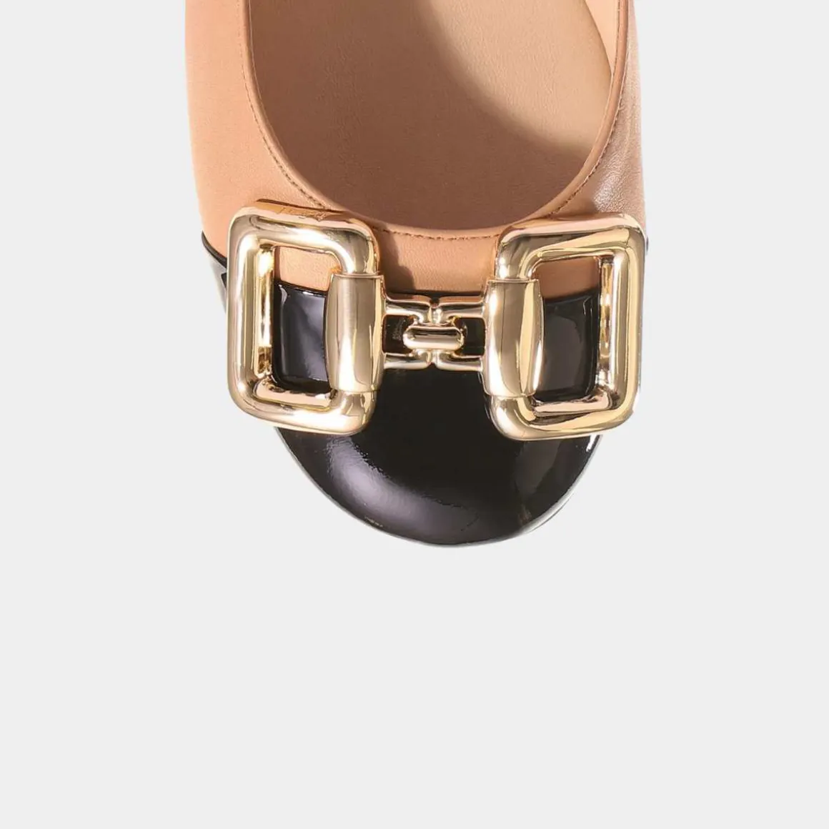 Det tofargede designet til de klassiske «Colette» ballerinaskoene fra Høgl bringer et friskt pust inn i garderoben din. Den slående, svarte hetten laget av lakkskinn og den gyldne hestebitten fungerer som sjarmerende blikkfang. Kontrasten er det matte, myke skinnet fra bærekraftig produksjon. Den fleksible hælen gir den beste støtten, slik at du kan gå komfortabelt i Högl-ballerinaene.