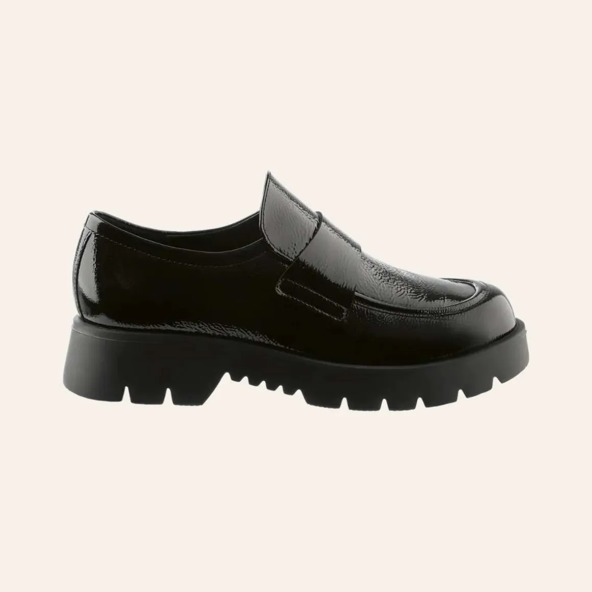 Den minimalistiske silhuetten til Høgl sine svarte loafers «Finn» kombinerer materialer av høy kvalitet med fantastisk komfort – og sko laget i Europa. Disse myke Högl-loafersene er laget av et blankt skinn med lett krøllet effekt som gir et subtilt, men markant uttrykk. De kraftige, mønstrede og sklisikre yttersålene fullfører designet.