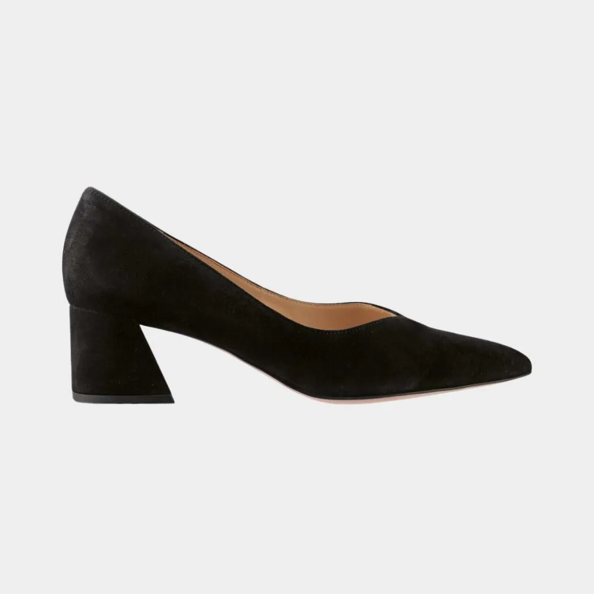 Komfortable pumps i semsket skinn med bred blokkhæl