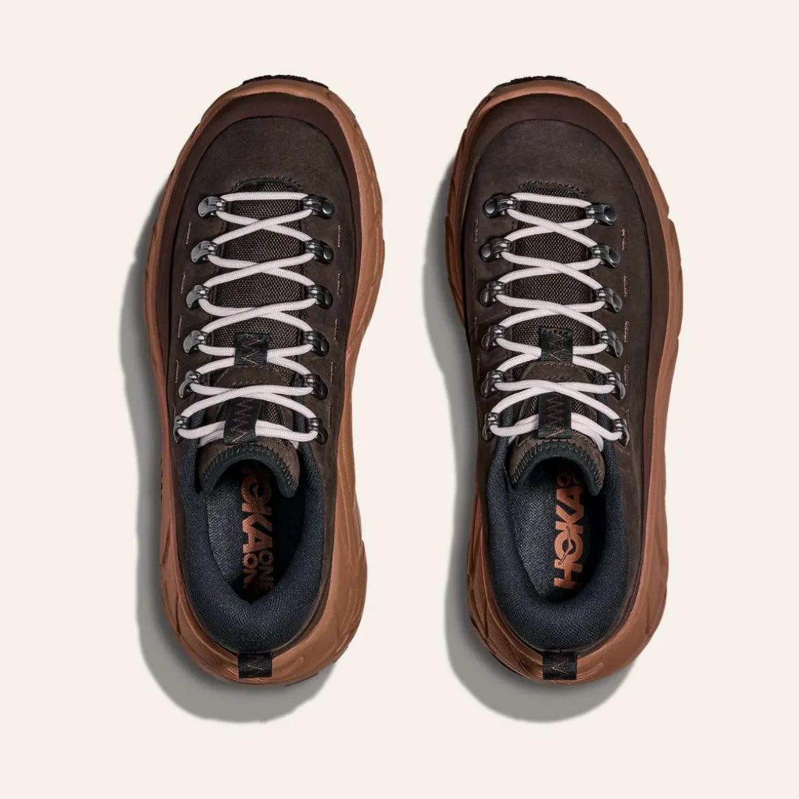 Tor Summit er en alpininspirert silhuett som hyller den klassiske turskoen. Med utgangspunkt i HOKAs signaturdemping har vi gitt Tor-modellen et nytt uttrykk med luksuriøst nubuck-skinn, gummibeskyttelse mot gjørme, sikksakk-søm og metallmaljer. Resultatet? Tur-inspirert stil med designdetaljer klare for byen.