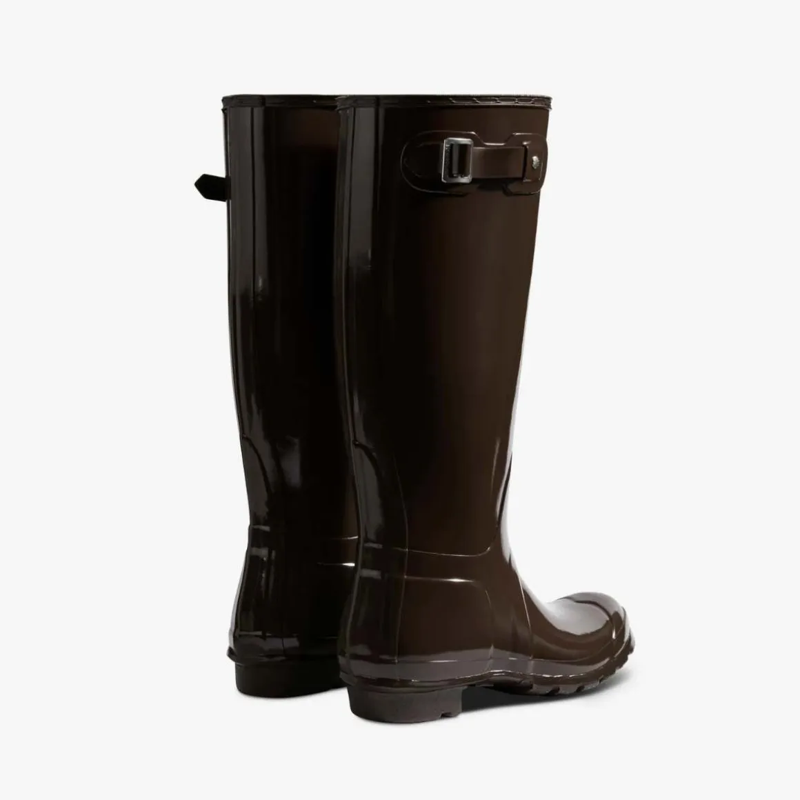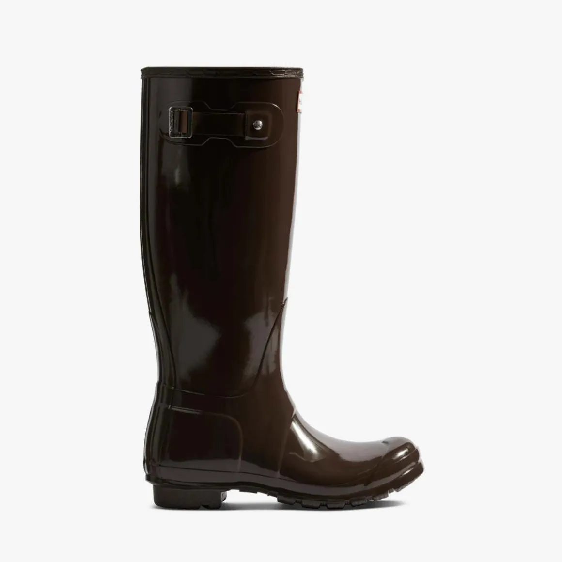 Perfekt for våte værforhold, denne damestøvelen fra Wellington har vært en hjørnestein i Hunter Original-merket siden introduksjonen i 1956. Laget av naturlig gummi, består hvert par av 28 håndskårne deler som monteres over tre dager på en aluminiumslest spesiallaget for Hunter, før de vulkaniseres for overlegen beskyttelse. Med Hunter Original-mønster på sålen og et komfortabelt polyesterfôr, er denne klassiske, glansfulle, sorte vanntette støvelen et must på regnværsdager.