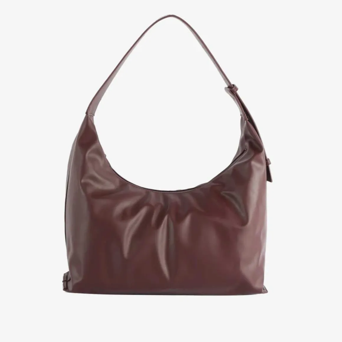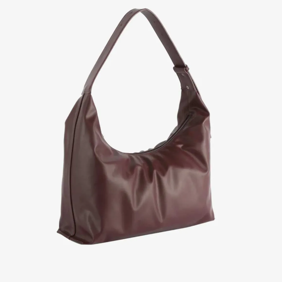 Bucketbag med skulderrem, lang justerbar stropp og glidelåslukking. Vesken inneholder ett rom med to innerlommer og en innerlomme med glidelås.