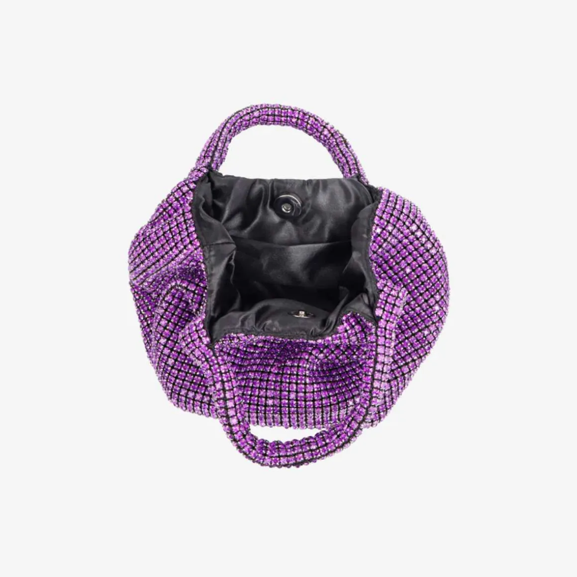 Mini håndveske fra Hvisk med magnetlukking og knutedetaljer på hankene. Vesken har ett hovedrom med en innvendig glidelåslomme.
