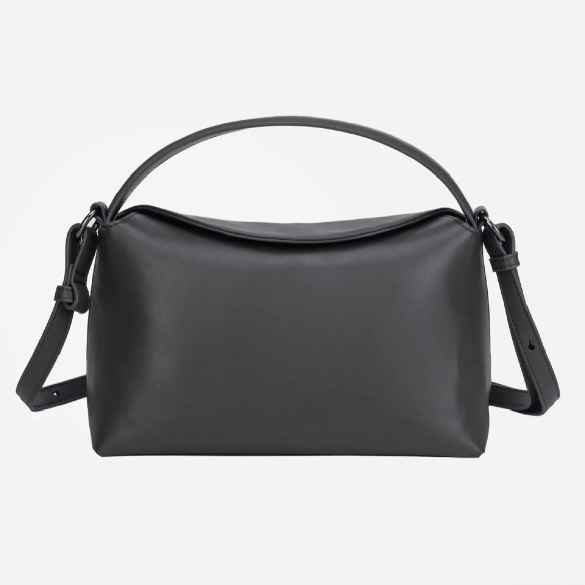 Håndveske med kort håndtak og en lengre, avtakbar og justerbar stropp. Vesken har ett stort rom og en liten innerlomme med glidelås. En kort klaff med to magnetknapper lukker vesken.
