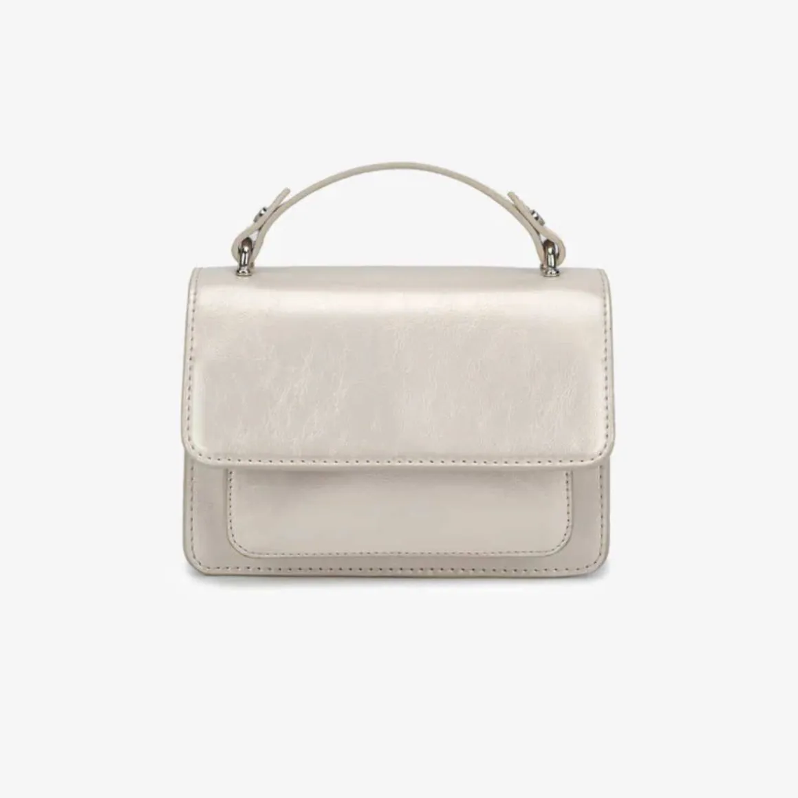 Stilren mini veske fra Hvisk med moderne design og praktiske detaljer. Vesken har et kort håndtak og en avtakbar, justerbar crossbody-rem, slik at du kan bære den både i hånden og over skulderen.