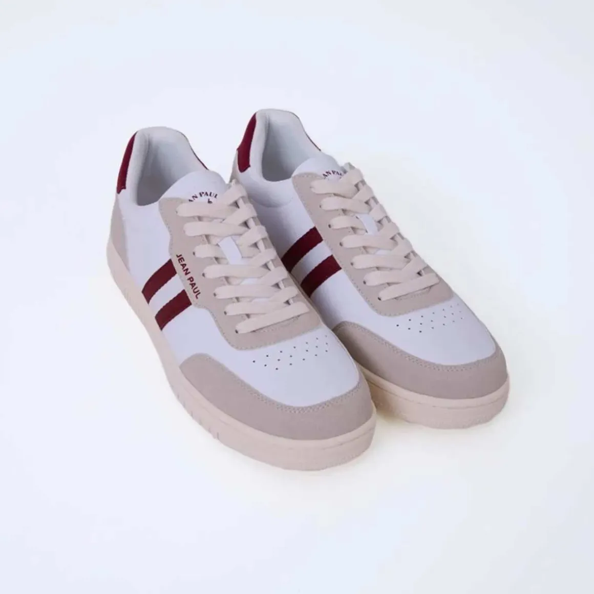 Klassisk og komfortabel tennisinspirert sneakers. Tå- og hælparti i semsket PU. Snørestykke med 7 lissehull. Dekorativt stripet bånd på siden. God dempet innersåle og hvit yttersåle i non-marking TPR. Logo på tunge og side.