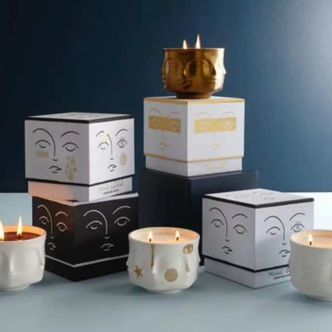 Et sitrusblomstret duftlys fra Jonathan Adler i en porselensbeholder, elegant dekorert med deres signaturmotiv, Dora Maar, og utsmykket med detaljer i skinnende gull. Etter at lyset har brent ned, kan beholderen gjenbrukes som en sjarmerende liten potte eller vase.