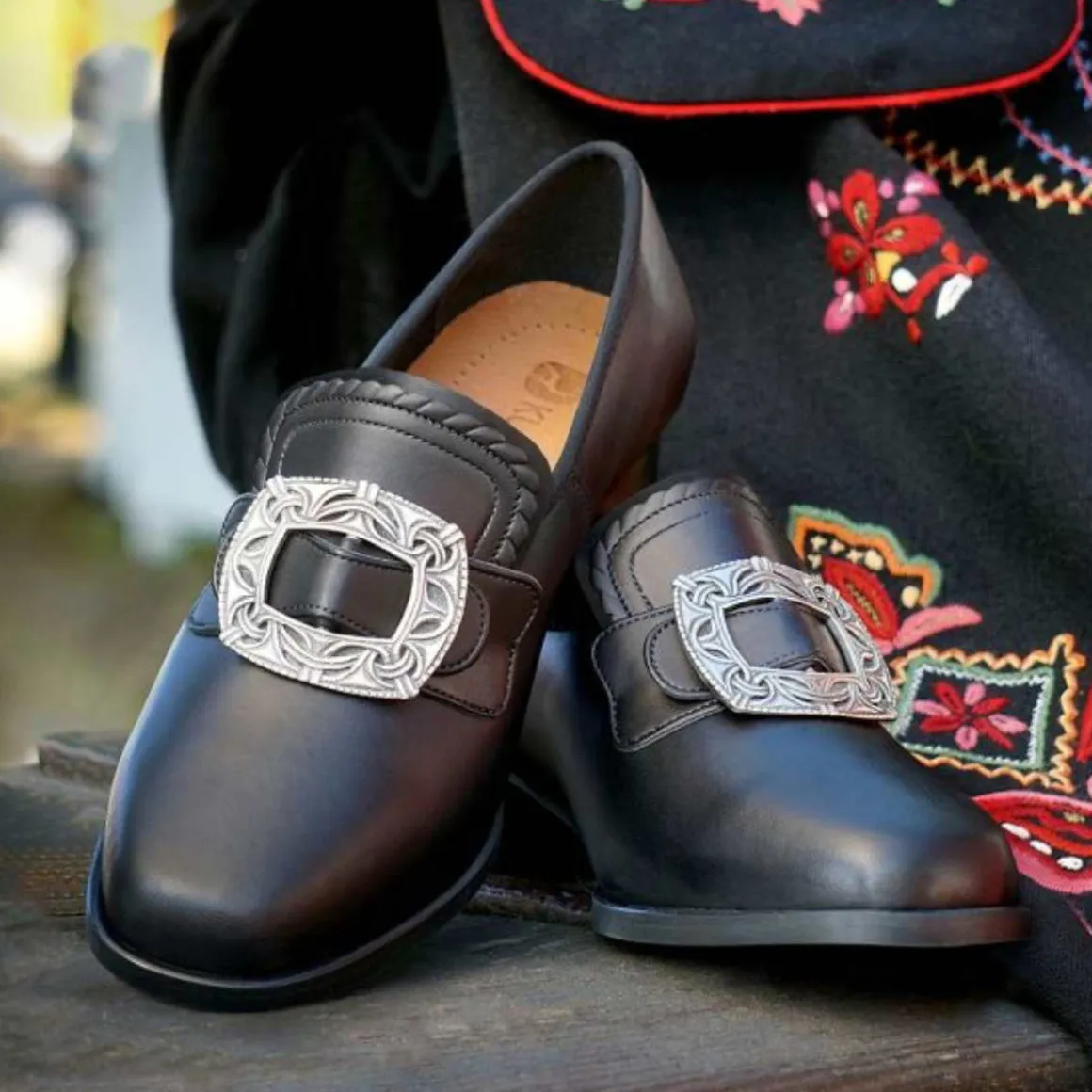 Bunadspennen kan enkelt skiftes hvis en ønsker noen av våre andre design. Klaveness bunadsko kan brukes til alle typer bunader og folkedrakter.