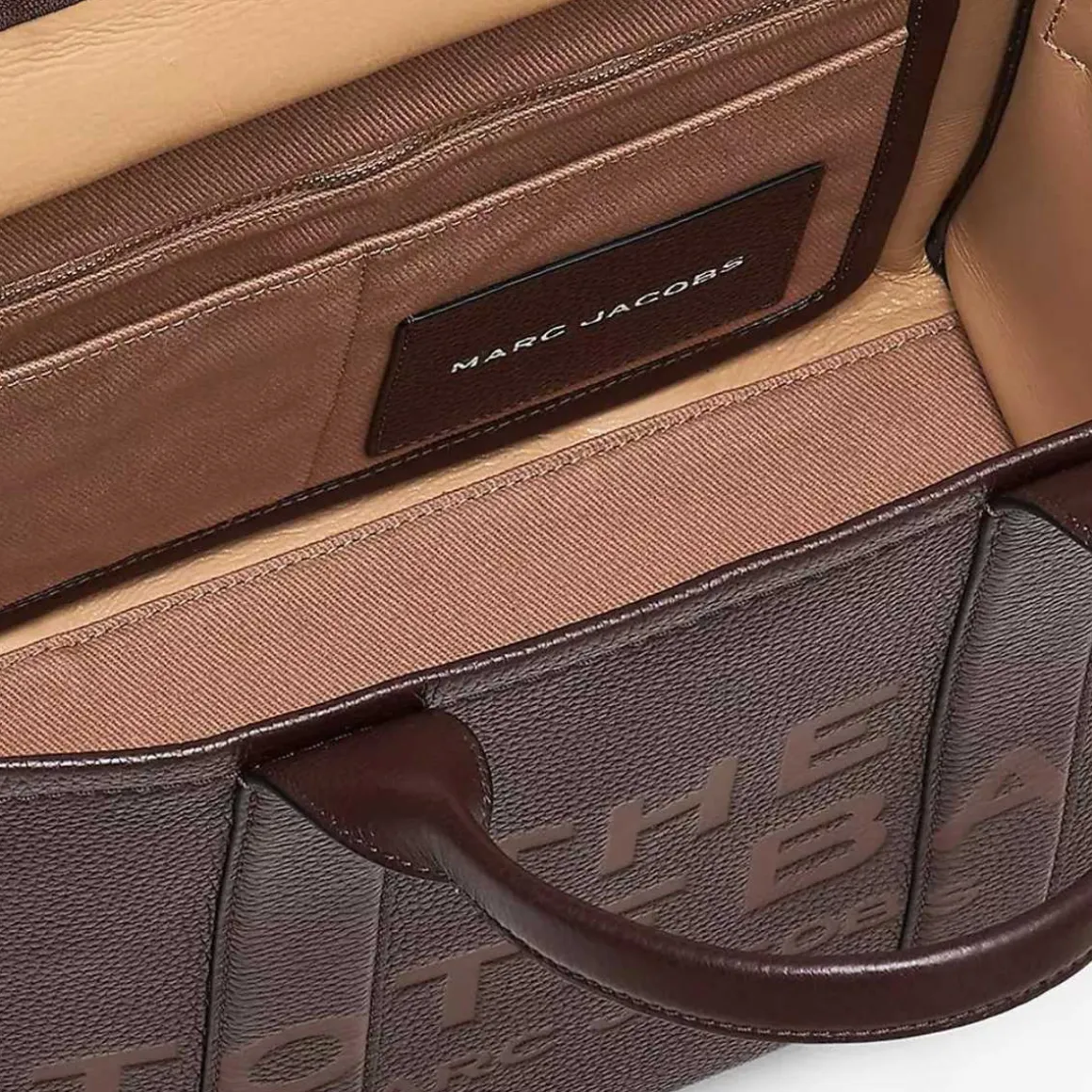 Den populære Tote vesken fra Marc Jacobs i skinn. Alt du trenger å gjøre er klar for alt du kaster i den. Denne lille toten har en glidelåslukking og kan bæres ved det øverste håndtaket eller den avtagbare skinnkorsstroppen. Nå tilgjengelig i et luksuriøst, naturlagd skinn med preget signaturlogo.