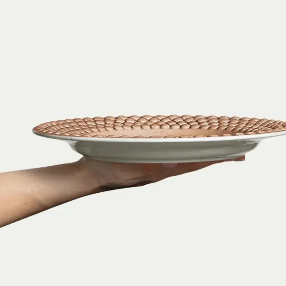 Mateus Bubbles tallerken 28cm i Cinnamon. Den lekne boblemønsteret fra Mateus Bubbles-kolleksjon pryder kantene på denne karakteristiske tallerkenen – perfekt både til festlige anledninger og til hverdagsbruk.