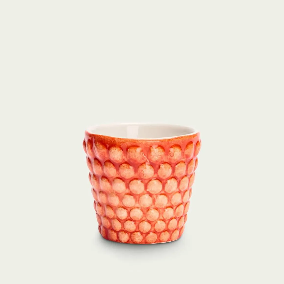 Mateus Espresso Cup 10cl Orange – Nyt morgenespressoen din i denne dekorative koppen fra Mateus Bubbles-kolleksjonen. Størrelsen og designet gjør den ideell til å servere små forretter, saus, desserter og mer. Den glaserte overflaten er dekorert av bånd av skinnende bobler, inspirert av motens ikoniske prikkemønster, som gir hvert produkt et varmt og lekent uttrykk.