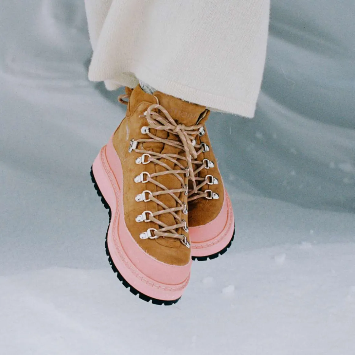 Mono Vidda med varmt shearling fór. Vidda er Mono sin nye statement-boot for deg som går din egen vei – uten å gå på kompromiss med komfort eller kvalitet. Inspirert av klassiske fjellstøvler får designet et moderne løft med en eksklusiv semsket overdel og en dristig rosa gummisåle som vekker oppsikt. Perfekt både til byturer og helgeutflukter i fjellet.