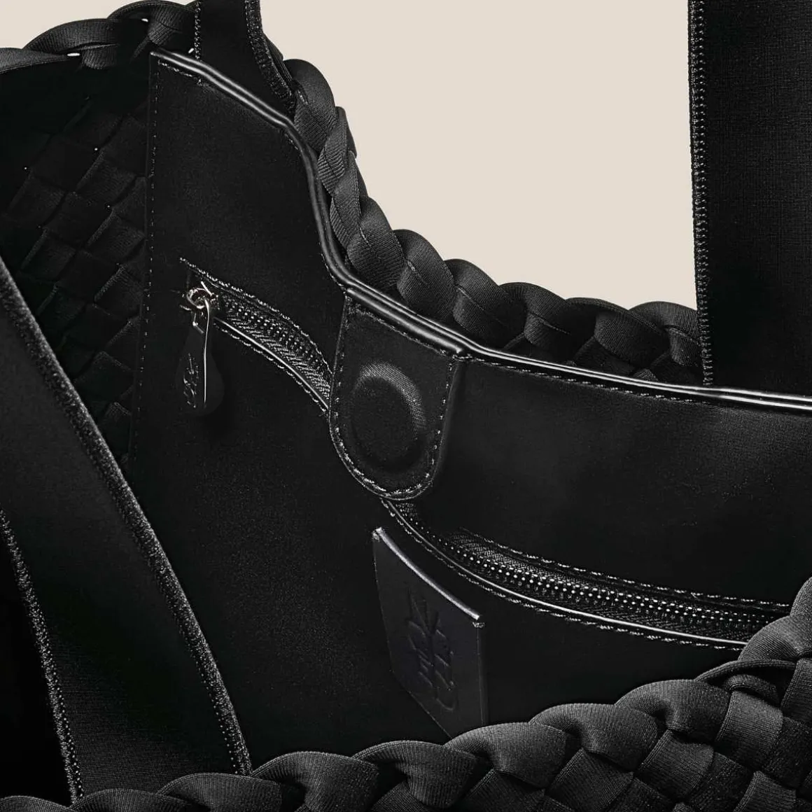 Designet med allsidighet i fokus, er Como Shopper Tote en del av Naghedi sin første unisex tote-kolleksjon. Vesken er håndvevd i helsort neopren, med en noe grovere vev enn våre ikoniske St. Barths-modeller, og har en elegant, forlenget silhuett.