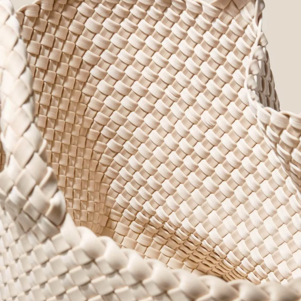 St Barths Tote Bag i medium fra Naghedi. Håndvevd neopren i ecru. Barths Medium Tote er en allsidig hverdagsveske for jobb, strand eller reise.