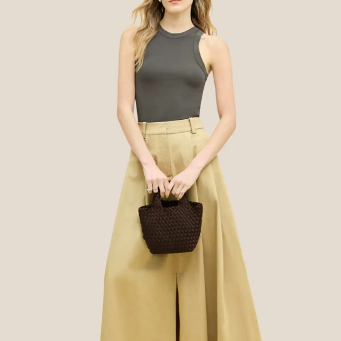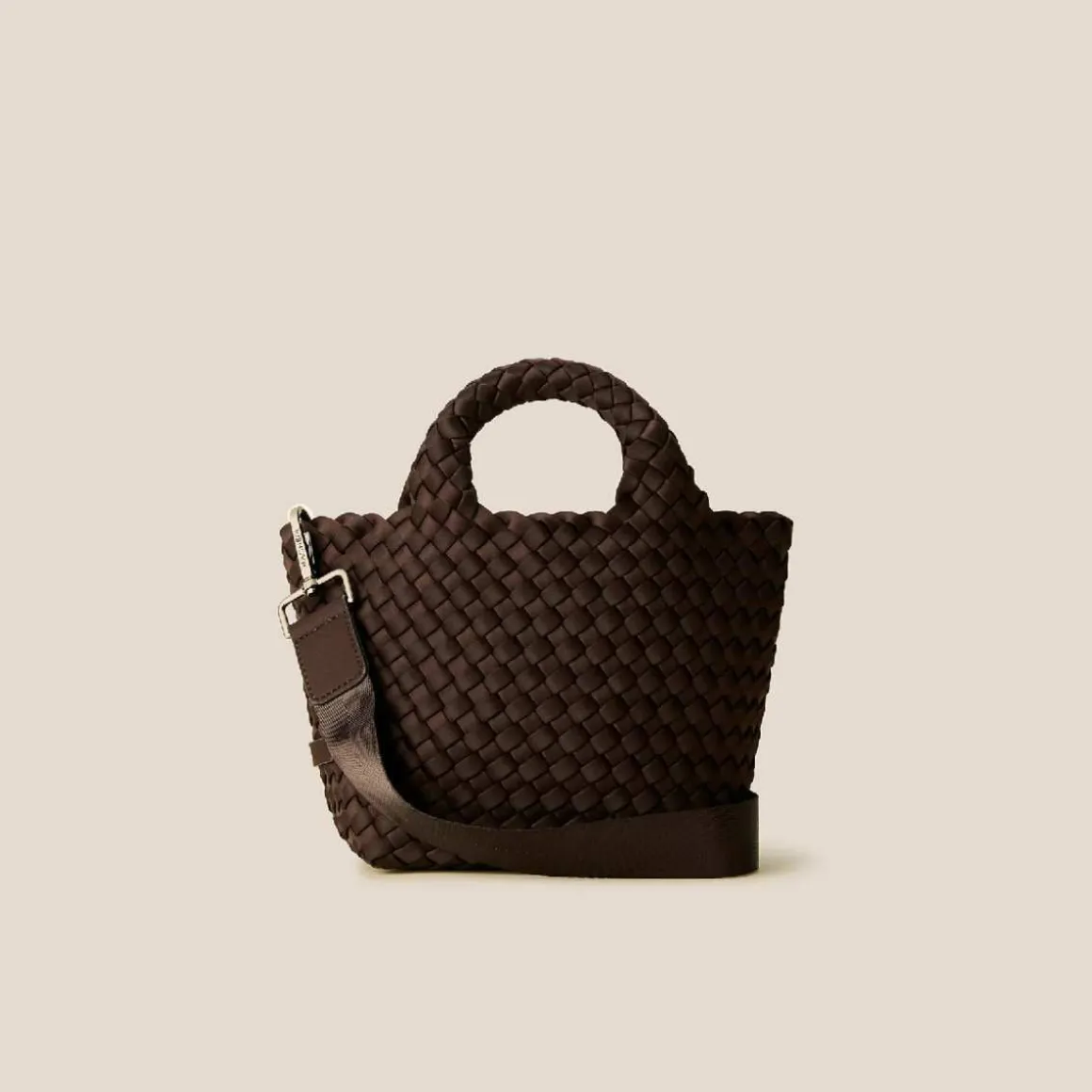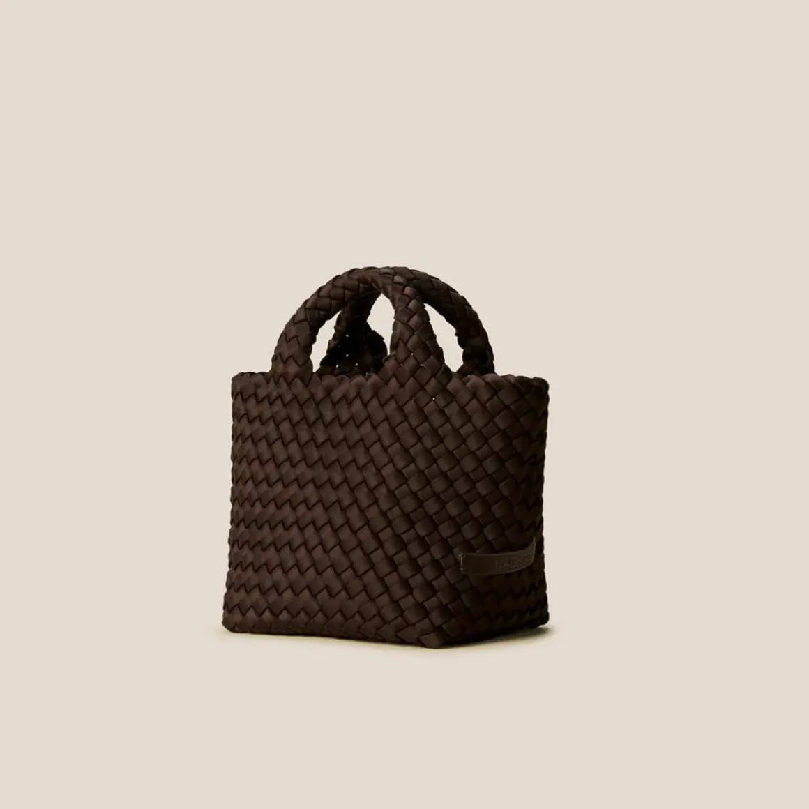 Naghedi St. Barths Petit. Håndvevd neopren i brunt. Barths Petit Tote går sømløst over fra dagtid til kveldstid, og bærer alle de viktigste tingene dine på en komfortabel måte.