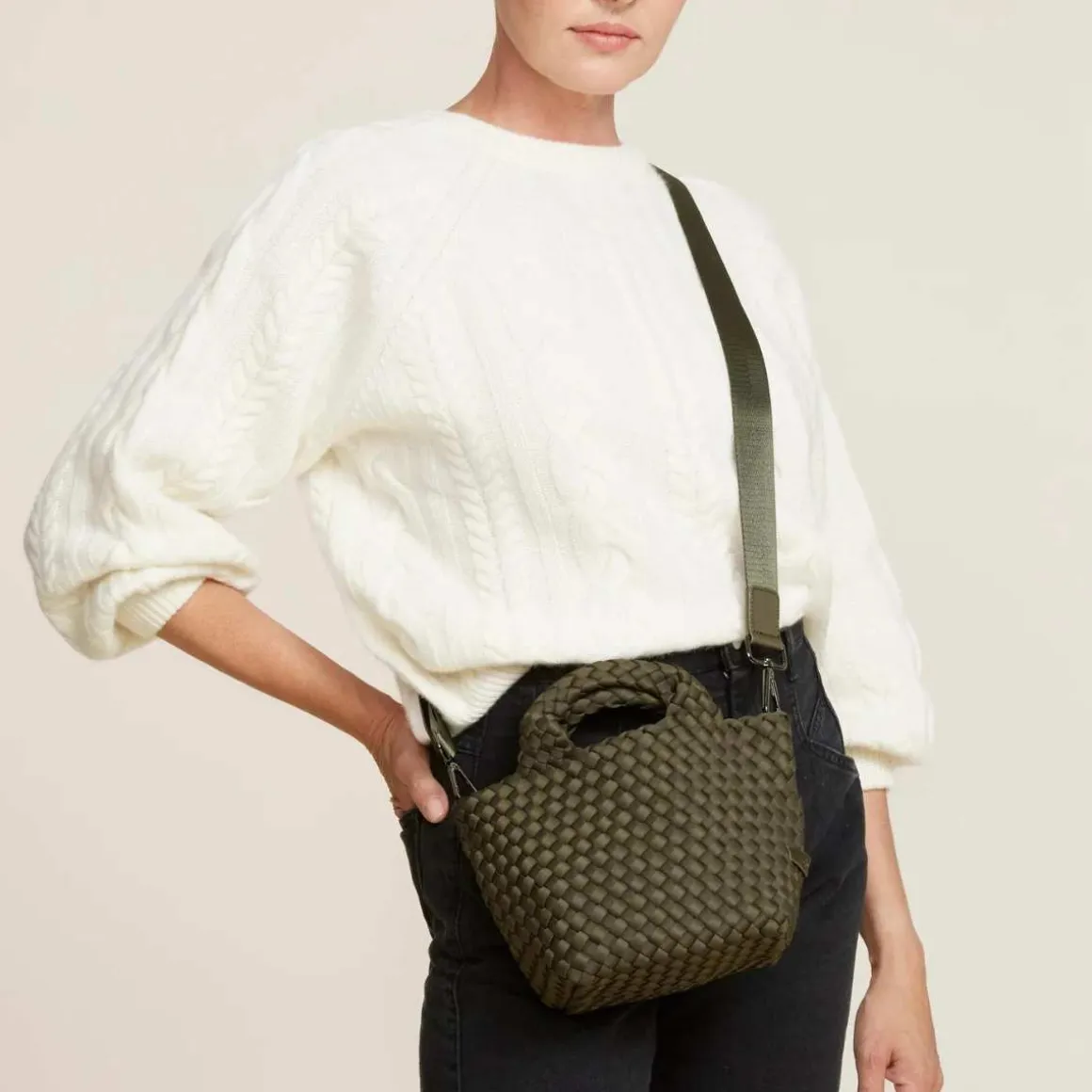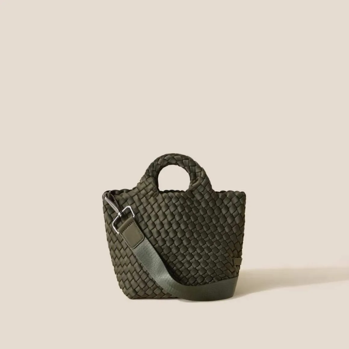 Naghedi St. Barths Petit. Håndvevd neopren i brunt. Barths Petit Tote går sømløst over fra dagtid til kveldstid, og bærer alle de viktigste tingene dine på en komfortabel måte.