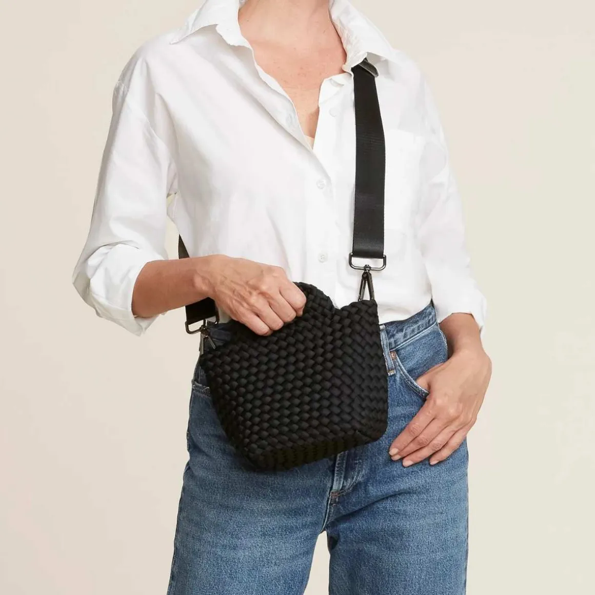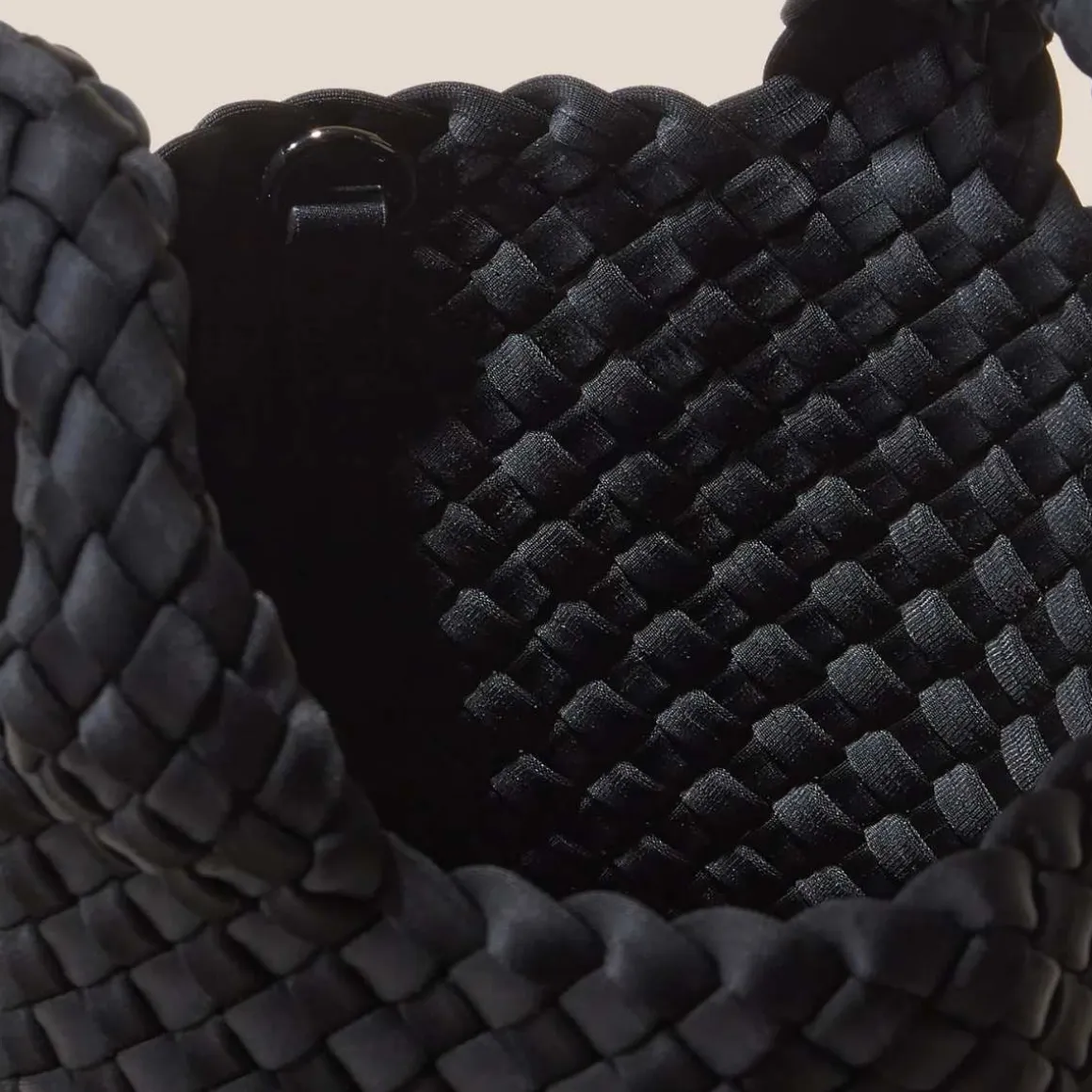 Naghedi St. Barths Petit. Håndvevd neopren i brunt. Barths Petit Tote går sømløst over fra dagtid til kveldstid, og bærer alle de viktigste tingene dine på en komfortabel måte.