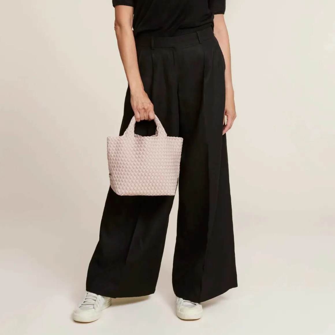 St Barths Tote Bag i small fra Naghedi. Håndvevd neopren i shell pink. St. Barths Small Tote er perfekt å ha med seg hele dagen, og er vesken du vil gripe etter hver morgen.