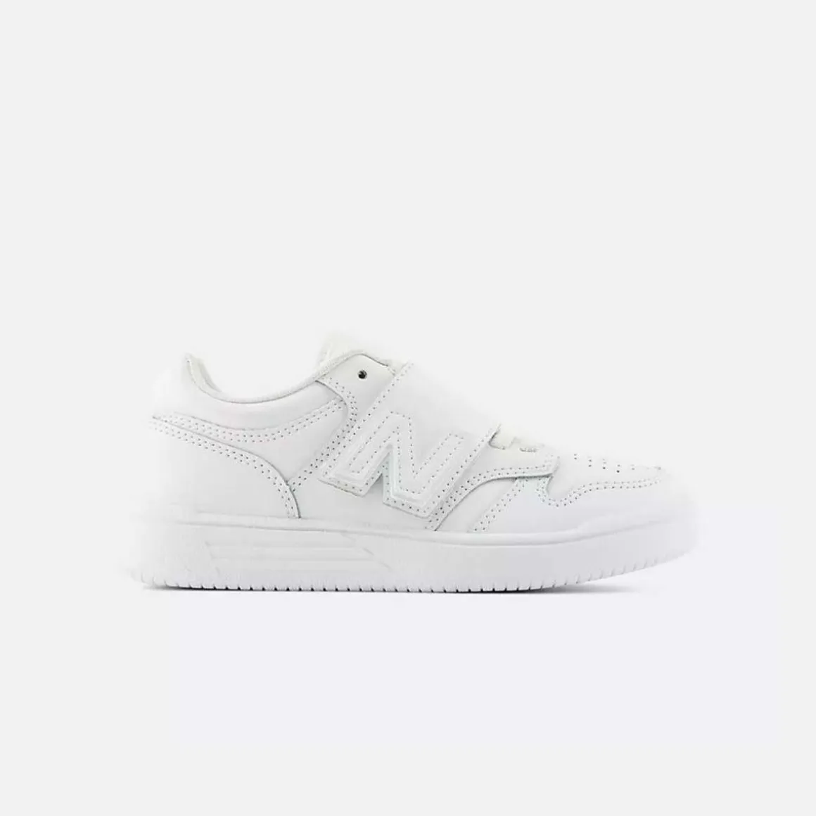 New Balance 480 Bungee Lace with Top Strap er modellert etter klassiske NBA basketball-sneakers, en stilig, men slitesterk barnesko. Med en overdel i syntetisk og skinn og en slitesterk gummisåle gir denne barneskoen et stiluttrykk mens den tåler hverdagsslitasje.