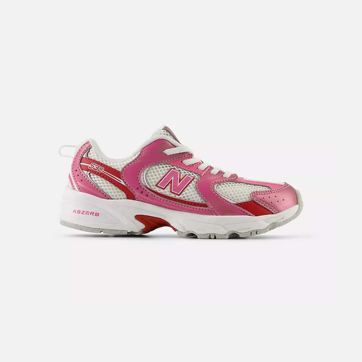 New Balance 530 Bungee Lace for barn er en tilbakeblikk til en av New Balance sine klassiske løpesko. Denne avslappede silhuetten kombinerer hverdagsstil med ABZORB-demping for overlegen komfort under foten, og den praktiske bungee-løsningen gjør det enkelt å ta skoene av og på.
