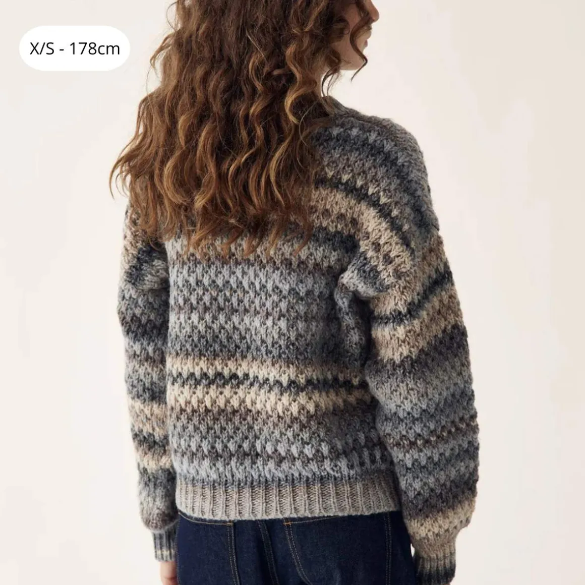 Gio Knit Sweater er en løs genser laget av 53 ull. Hvert plagg er unikt på grunn av garnets fargeprosess, noe som kan gi små variasjoner mellom produktene. Den har ballongermer.