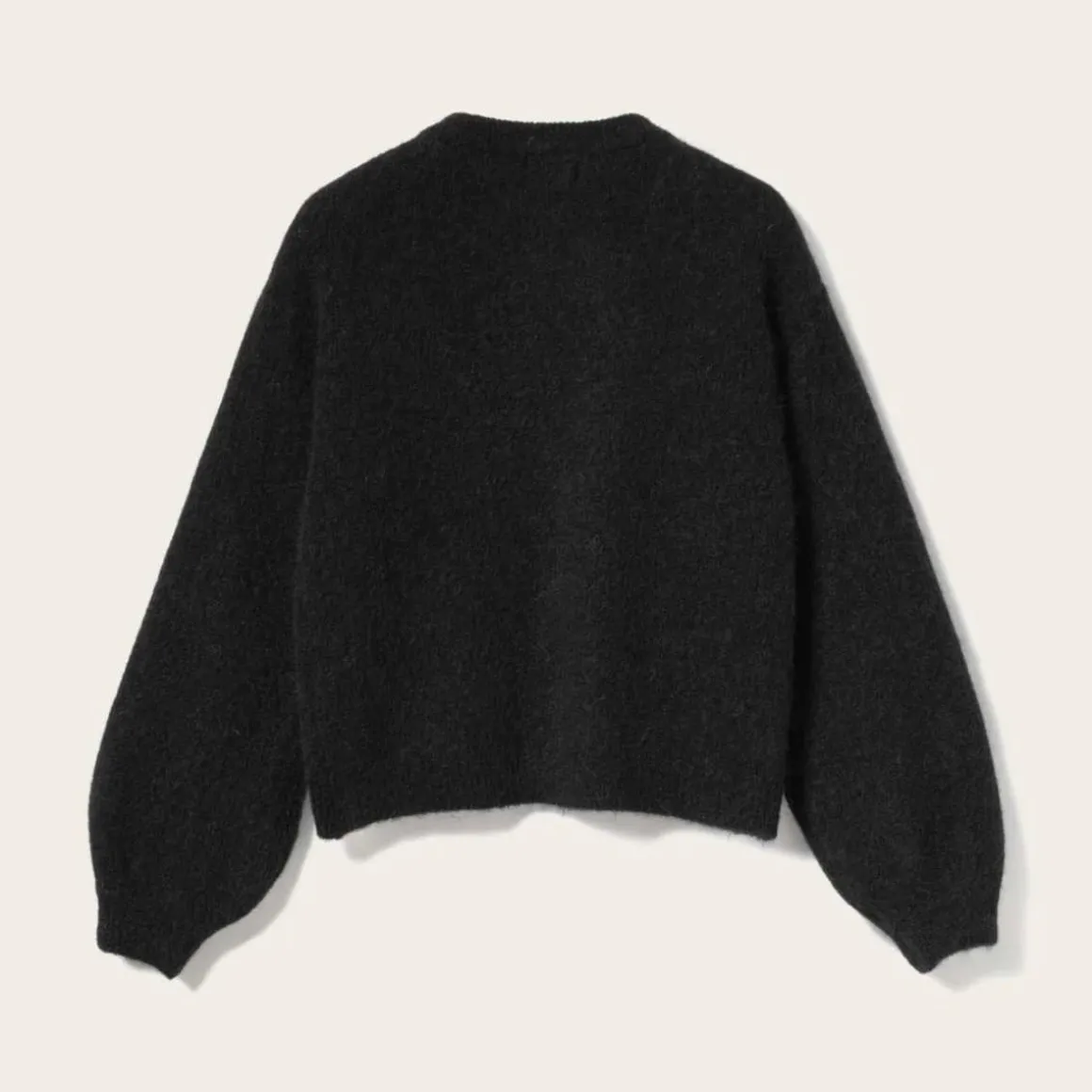 Kae Knit Cardigan fra Noella er laget av en alpakka-blanding. Cardiganen har et lett og luftig uttrykk, noe som gjør den perfekt for både kjølige og varme årstider. Med en klassisk rund hals, knapper foran og voluminøse ermer med delikate hull-detaljer over mansjettene, tilfører den garderoben din et tidløst, men moderne preg.