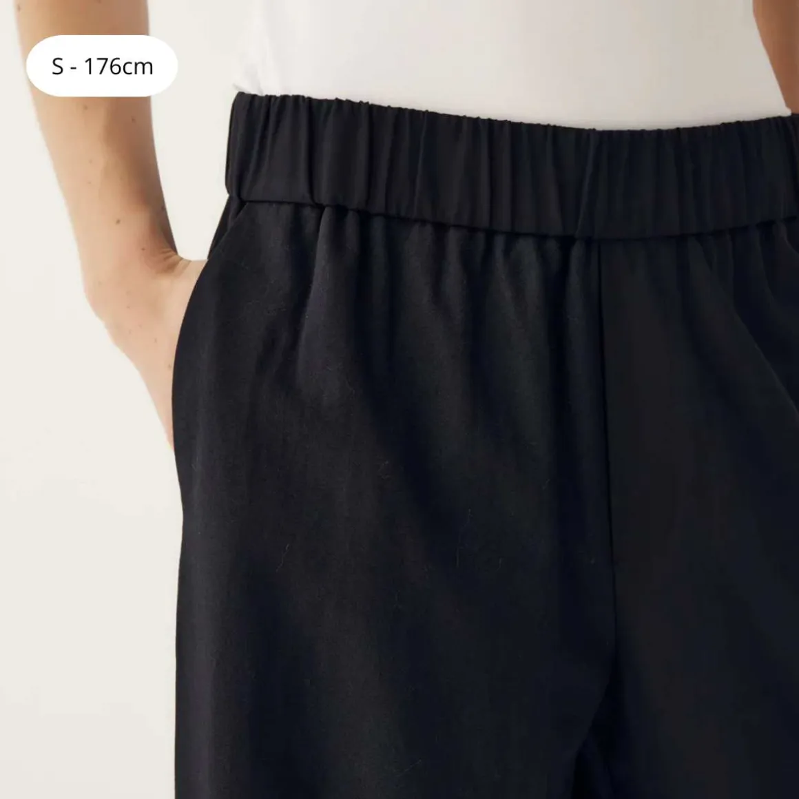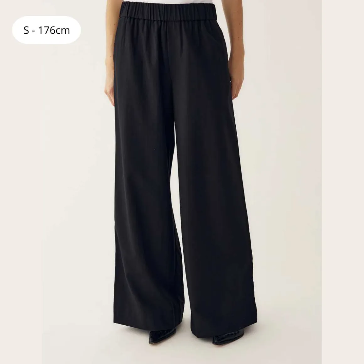 Kameron Pants er lange bukser med elastikk i midjen, vide ben og løs passform. Buksen har et komfortabelt design med et enkelt og avslappet uttrykk. Style dem som en del av hverdagsantrekk eller bruk dem som finere bukser for et mer sofistikert look.