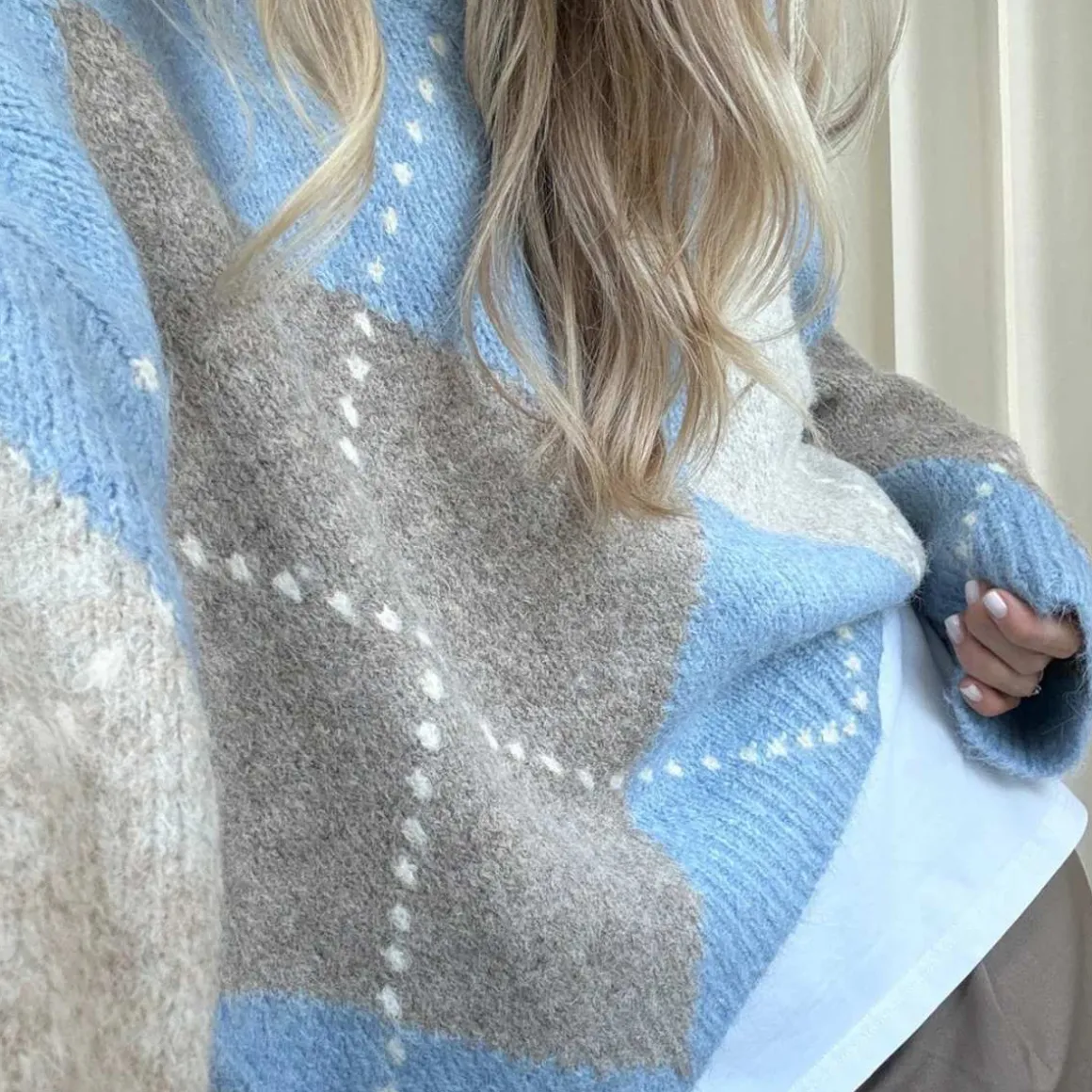 Lai Knit fra Noella er en klassisk strikkegenser med argyle-mønster. Den er designet med V-hals, lange voluminøse ermer og en løs passform som gir et eksklusivt og tidløst uttrykk. Et statement-plagg i garderoben som kan styles med jeans, en pen bukse eller et skjørt.
