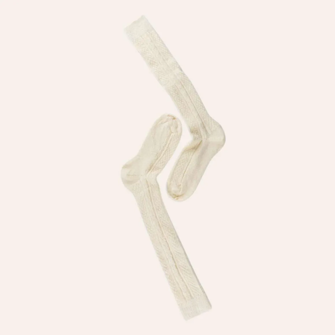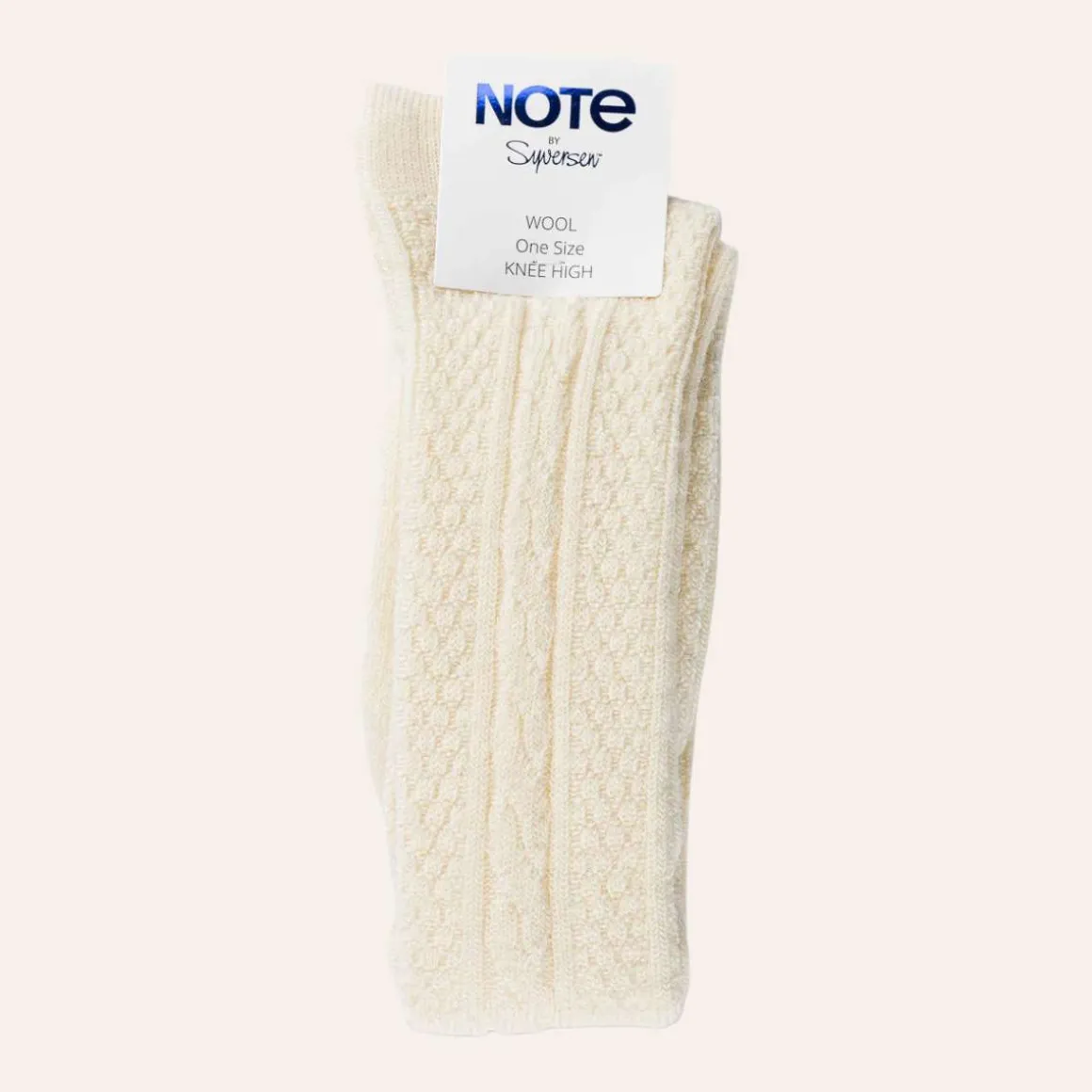 Note Wool Cable Knit Knee High – Knestrømper i myk ull med klassisk flettemønster