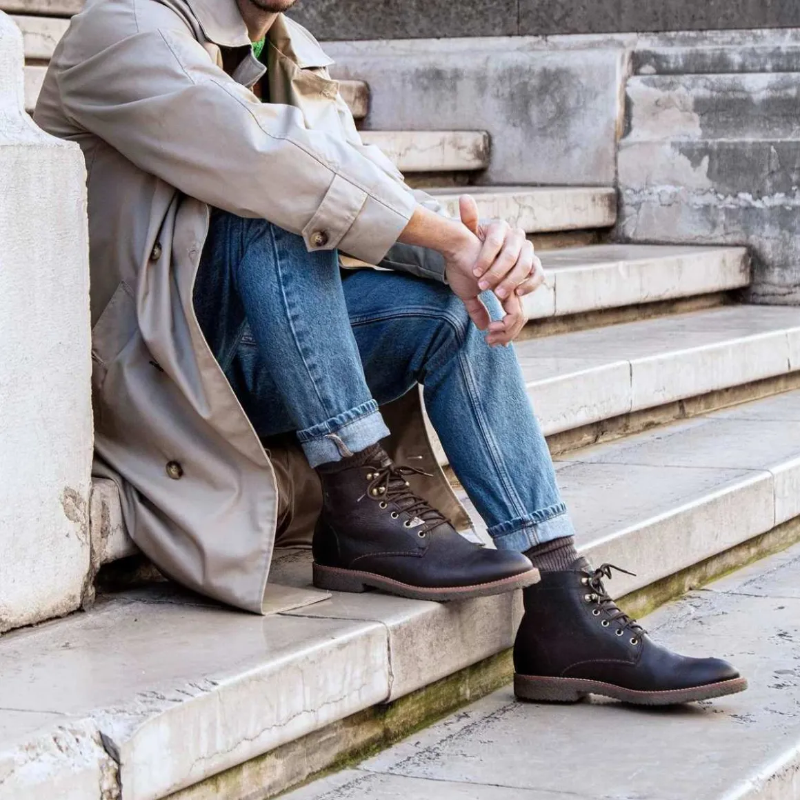 - Ankelboots med snørebånd i vanntett smurt nappa skinn.